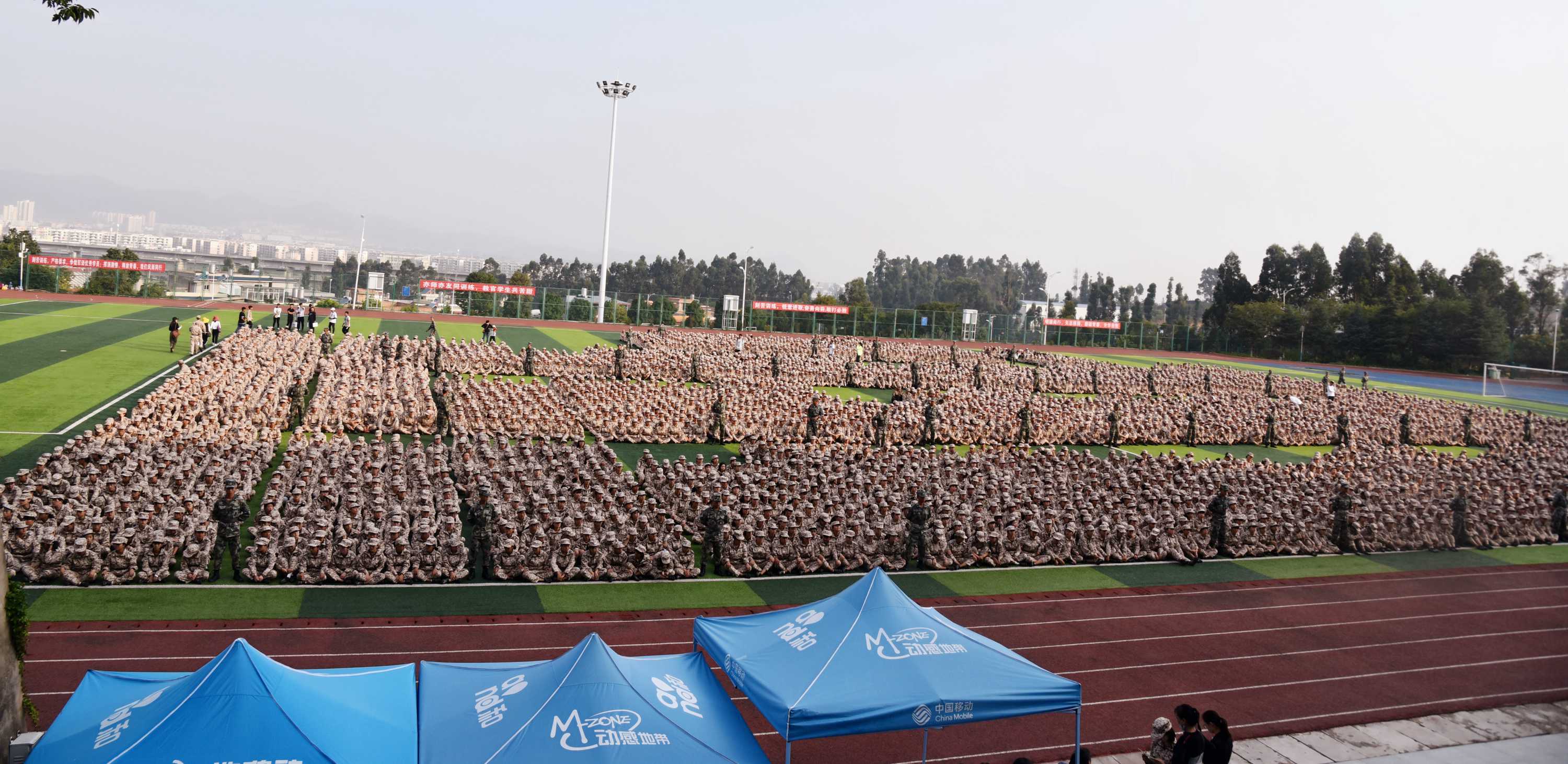 伴随着庄严的国歌声,五星红旗冉冉升起,军训动员大会拉开帷幕。