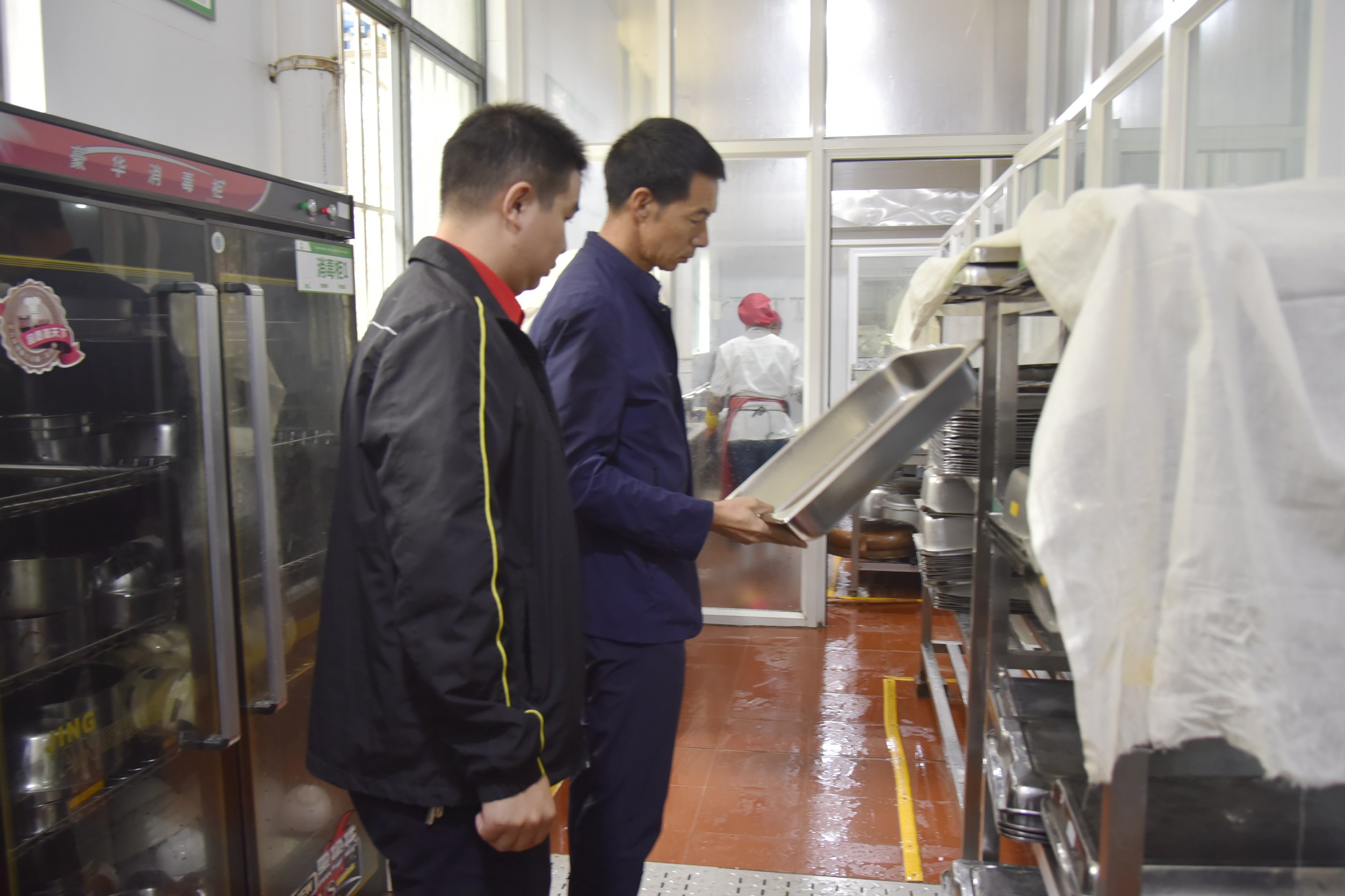 张磊副院长在检查中强调,食品安全工作形势严峻,责任重大,全体管理和服务人员要高度重视食堂食品安全工作,要时时紧绷食品安全这根弦不松懈,以习近平新时代中国特色社会主义思想为指导,把食品安全工作放在更加突出的位置,严格落实“四个最严”要求,严防、严管、严控食品安全风险,认识要再提高,责任上要再明确,工作上要再细化,要以高度的责任感,切实履行好对学校食堂食品安全的管理职责,确保学院食堂食品的卫生与安全。