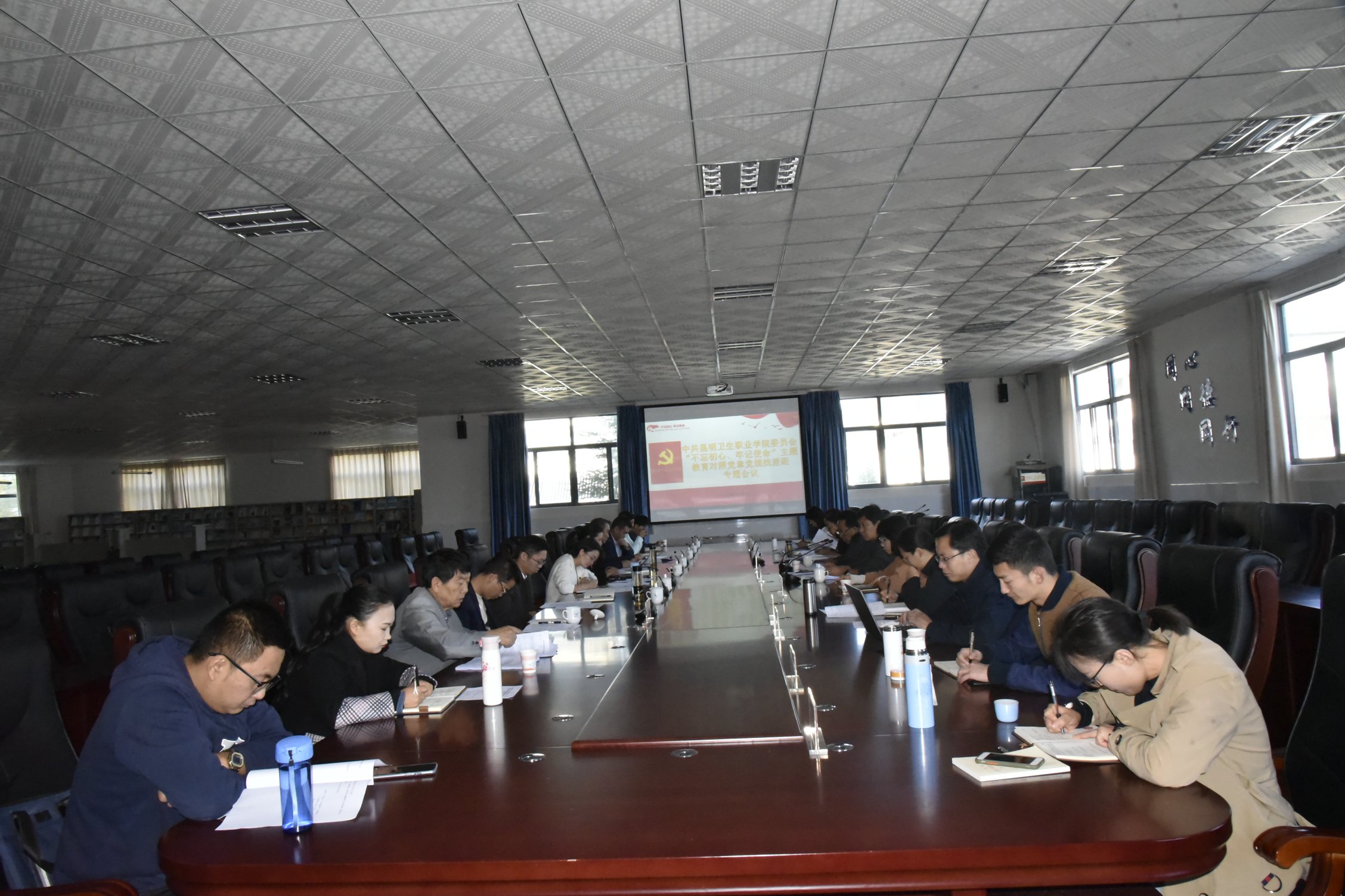 10月30日10:30,beat365平台官方网站党委在图书馆二楼会议室召开了“不忘初心、牢记使命”主题教育领导班子对照党章党规找差距专题会。学院党委书记龙正昌,学院领导班子及党委委员参加了大会。省委高校工委、省教育厅“不忘初心、牢记使命”主题教育民办院校第一指导组组长杨丽、副组长魏岷、成员胡浚娴一行3人到会指导。会议由学院党委副书记张晓刚主持。