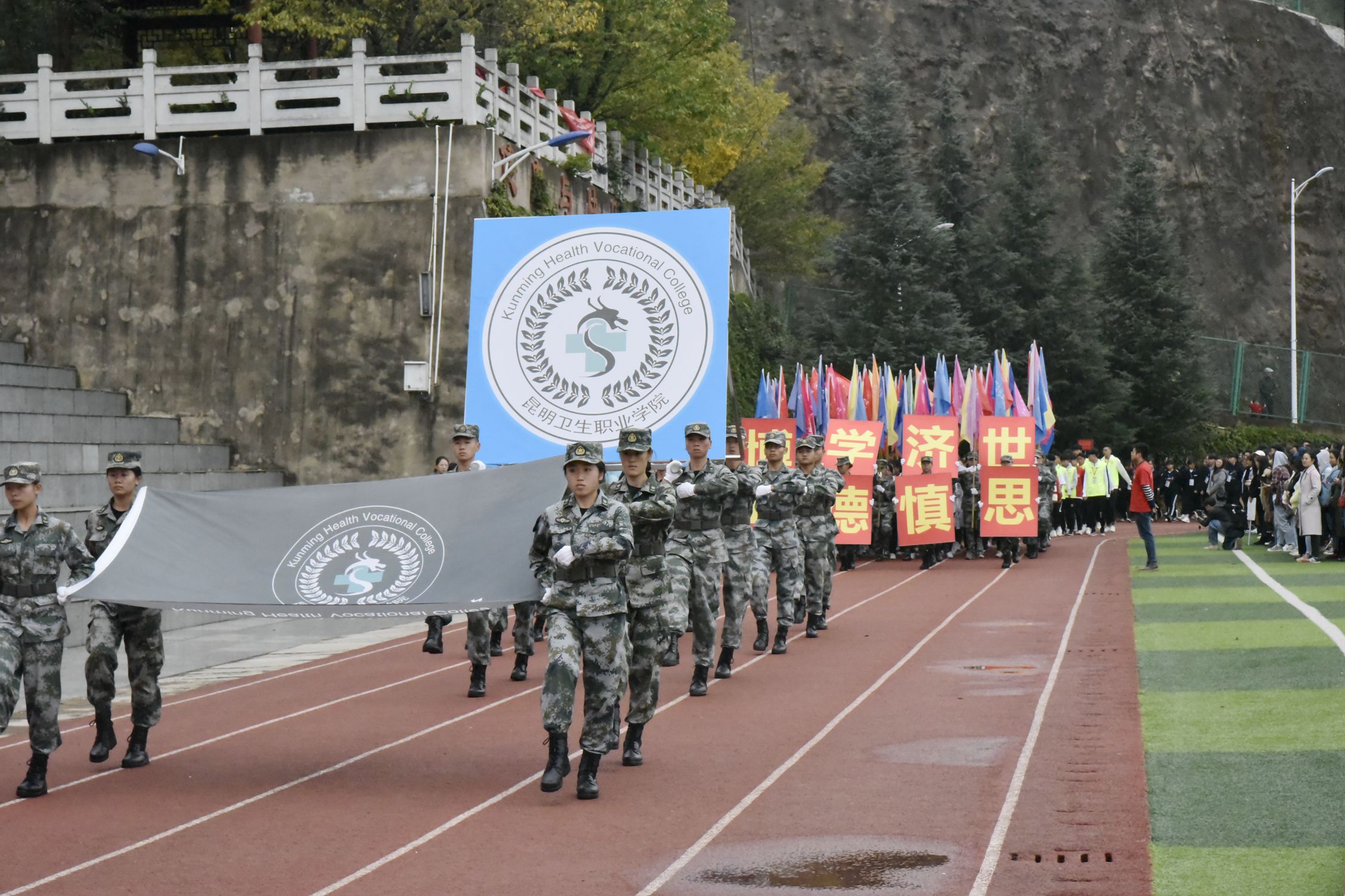 伴随着欢快的运动员进行曲和主持人解说,入场式正式开始。国旗、校旗、校徽、彩旗队等方队首先入场,紧跟其后的是志愿者方队、4个五年制运动员代表队、2个三年制大专运动员代表队和1个教师运动员代表队,以及学生社团代表队和大学生艺术团表演方队,他们以稳健的步伐,嘹亮的口号步入会场,走过主席台,接受全院师生的检阅。