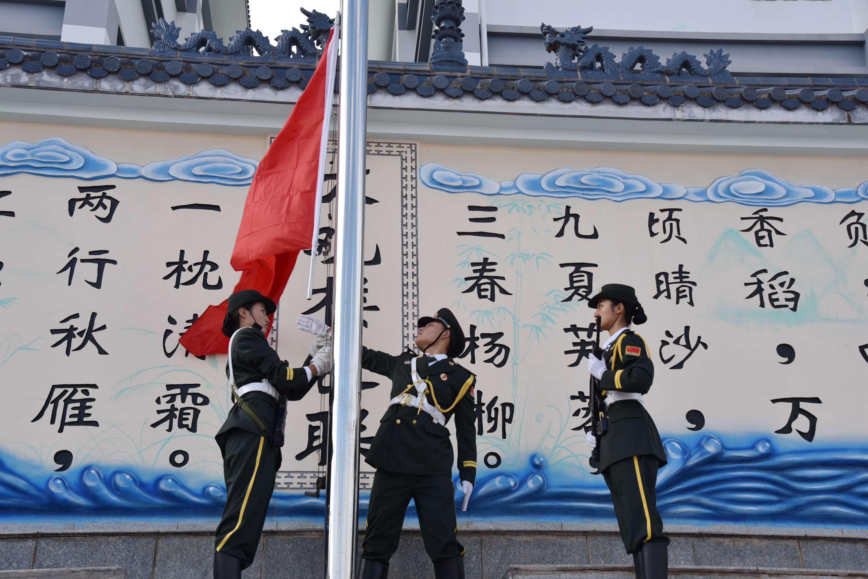 入场式结束后,举行了庄严的升旗仪式,伴随着雄壮的国歌乐曲,五星红旗冉冉升起。