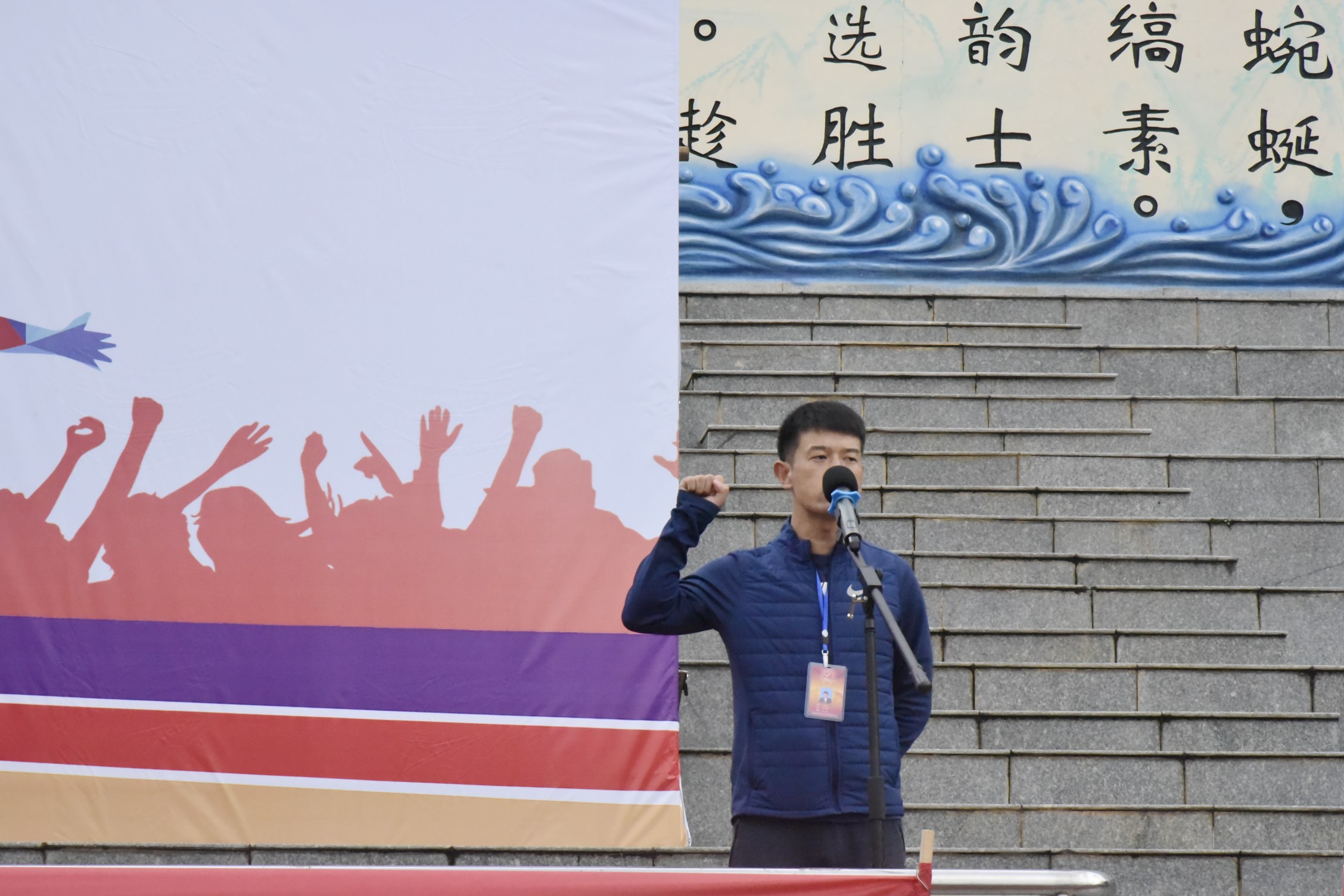 运动员代表2019级高职临床6班李浩宇同学和裁判员代表和雪松老师依次上台宣誓。