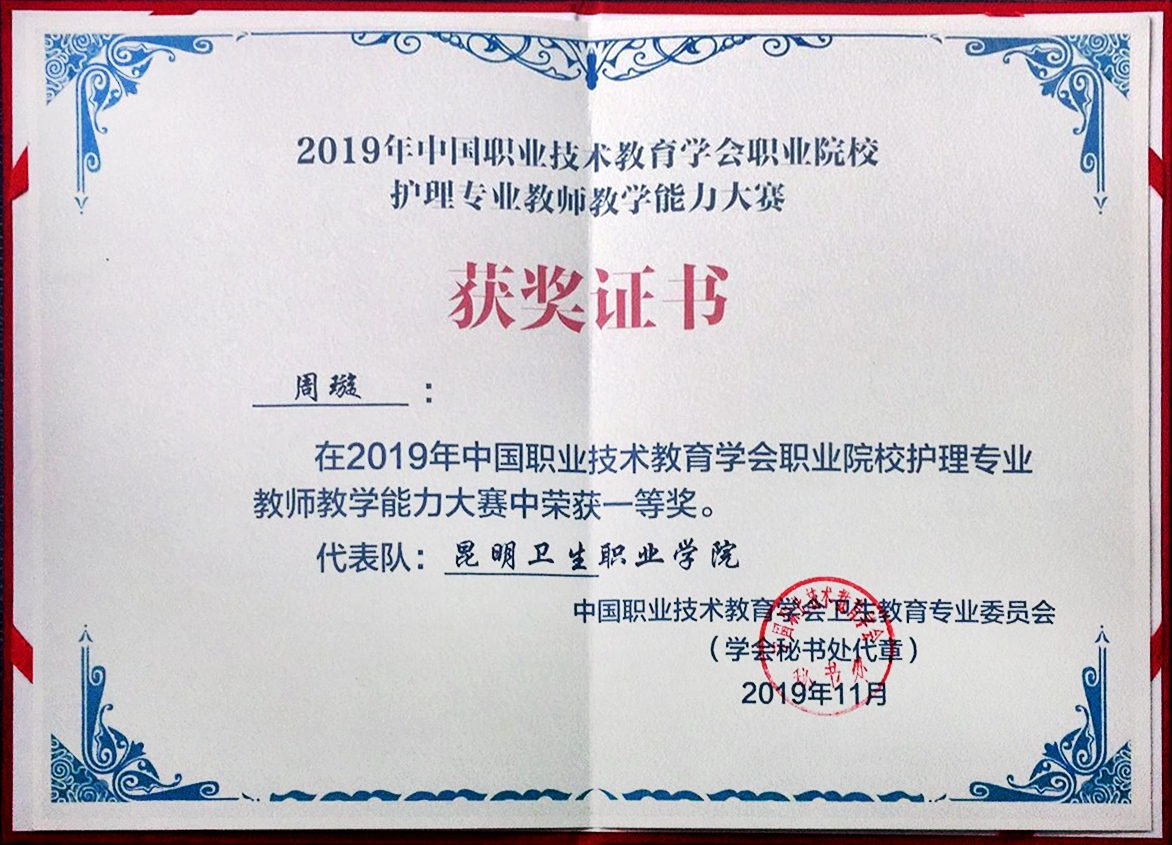 护理学院教师周璇、刘小艳代表beat365平台官方网站参赛。参赛教师精心准备、沉着应战,经过为期3天的紧张比赛,斩获佳绩,获得团体一等奖,周璇老师、刘小艳老师均荣获了个人一等奖。其中周璇老师在说课程环节中以最高分97.33分打破了前两届说课程最好的成绩记录,以全国第一名的优异成绩得到专家评委的一致好评。