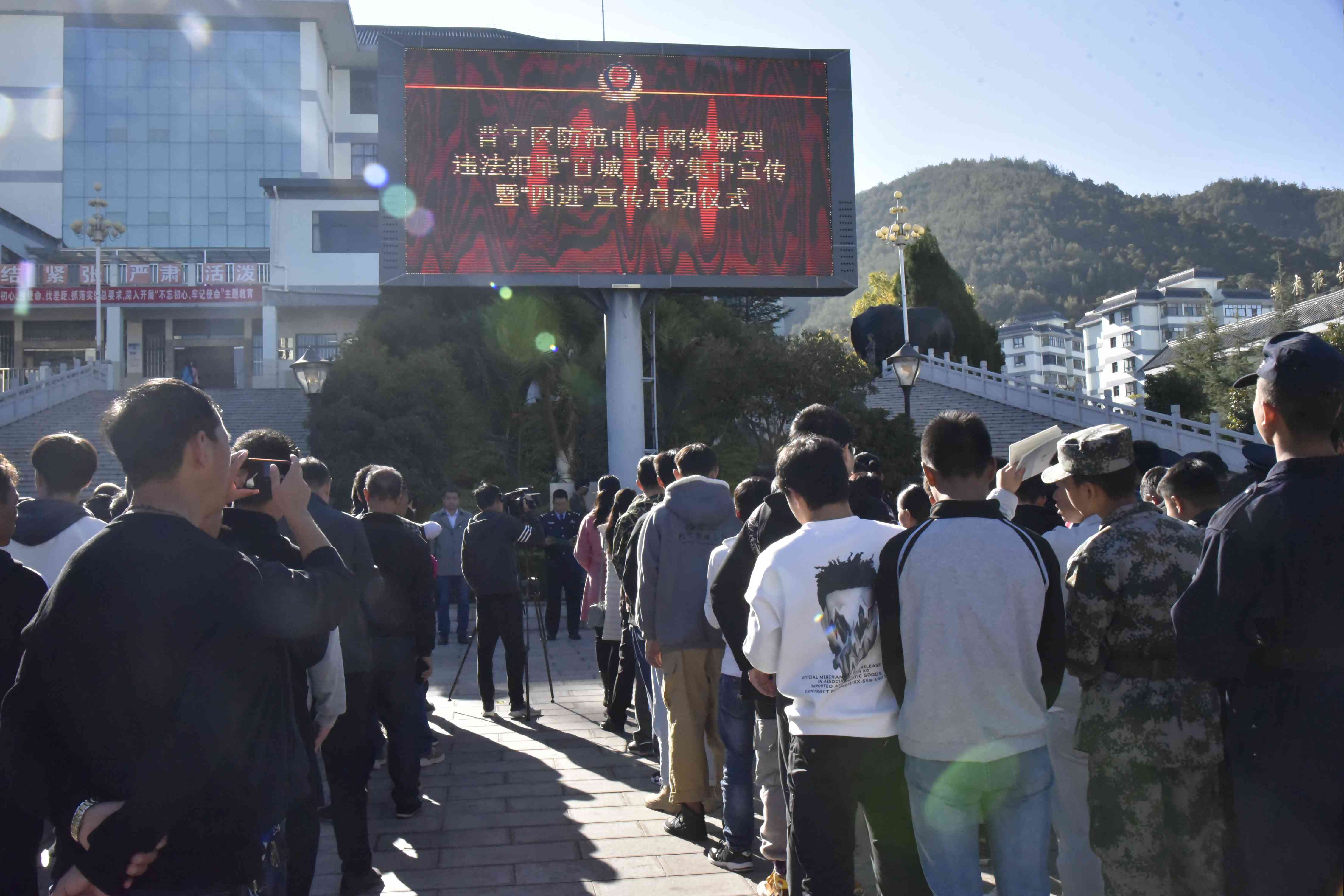 11月29日上午,昆明市公安局晋宁分局联合晋宁区各区级相关单位以“防范新型电信网络诈骗安全教育活动”为契机,结合公安部刑事侦查局发的文件相关要求,决定在beat365平台官方网站电子大屏幕前举行“守护青春“百城千校”防“套路贷”防电信网诈骗宣传活动启动仪式。