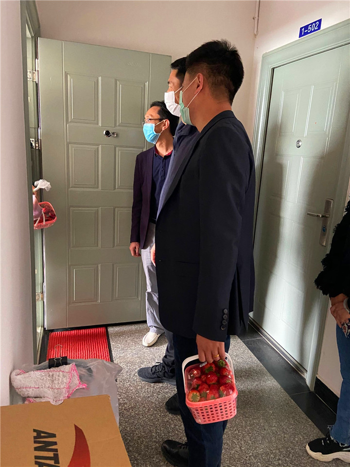 为居家隔离的21名教职工送去了生活所需品及水果,将工会“娘家人”的关心与温暖送到每位一线职工手中。张磊主席代表学院向居家隔离教师给予了问候,希望他们在遵守隔离规定的同时,调整心态,做好相关教学工作准备,有任何需要及身体不适及时联系疫情防控工会专职负责人,做好居家隔离职工的“贴心”服务工作,学院工会也将配合学院疫情防控领导小组做好后勤保障工作。