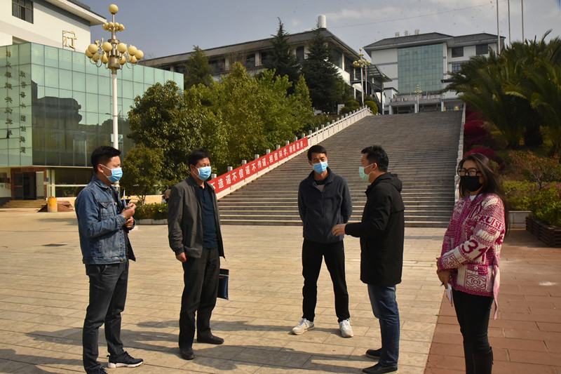3月10日下午,昆明市晋宁区教育体育局局长张宏、艺术卫生与健教科科长韩建玲一行4人到beat365检查疫情防控及开学准备工作。beat365党委副书记张晓刚、副院长张磊及相关部门负责人陪同检查。