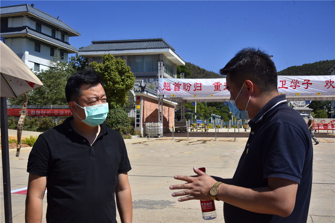张局长实地查看了学院校外临时处置点、测温点、防疫物资储备室等设置情况,详细了解了防疫物资储备、环境消杀、体温测量等工作安排,并走进学生餐厅、公寓,实地查看用餐、环境消杀、体温测量等工作。