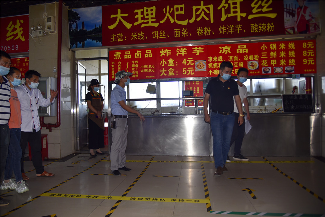 演练结束后,由学院副院长周平带队,党政办毛明、杜凯,大学生工作部王冬,后勤保卫处杨继锋,雍勤公司唐寅福、杨锐等相关部门负责同志深入学院各食堂,实地检查食堂防疫和复学准备工作,详细检查食堂疫情期间供餐保障、疫情防控措施和复学准备等工作。重点检查就餐方式和人员分流温检测流程。