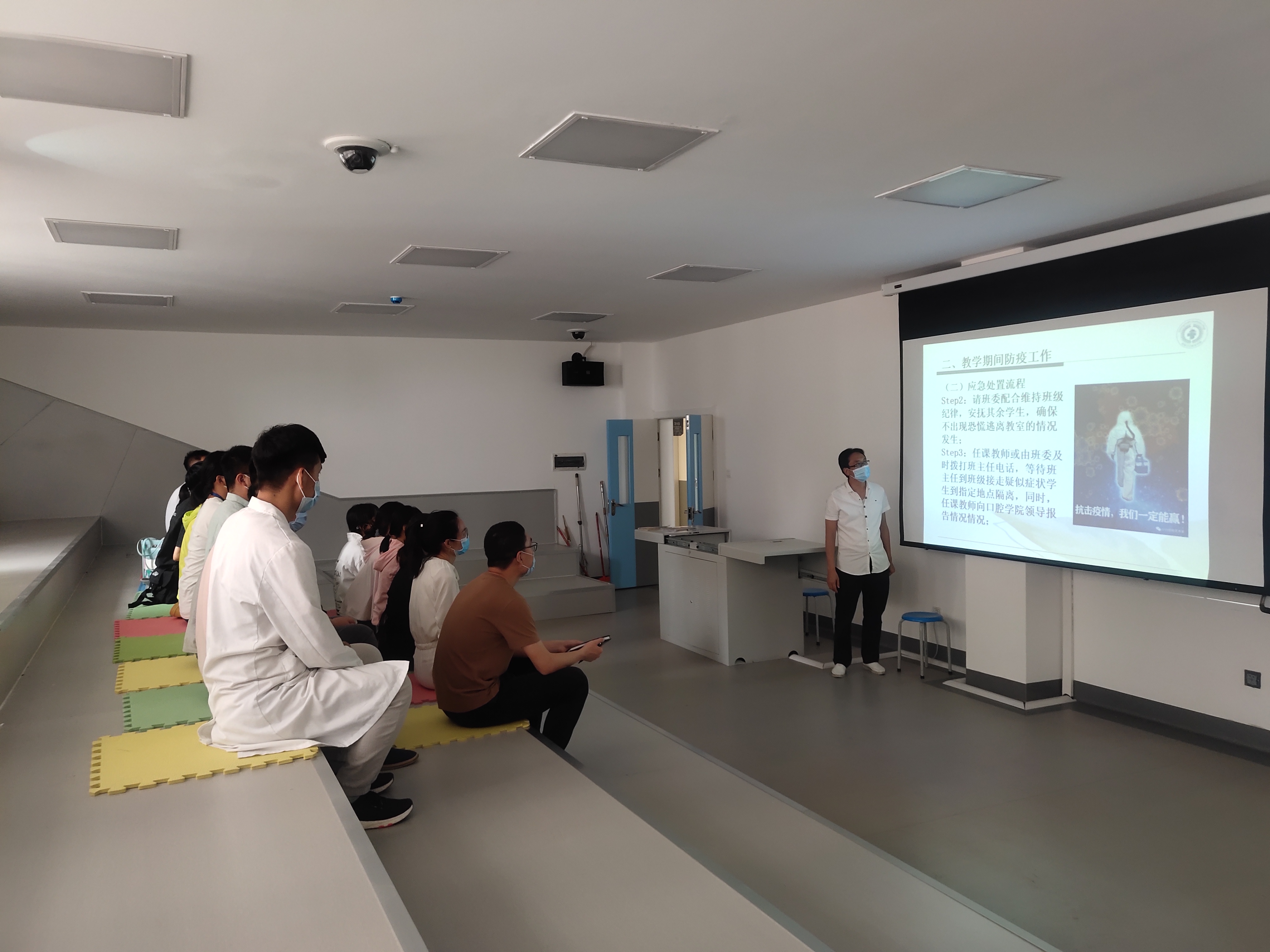 (三)口腔学院副院长虎志辉老师对口腔学院教师组织了一次《beat365平台官方网站2019-2020 第二学期教师课堂教学期间突发疑似疫情处置流程预案》学习;