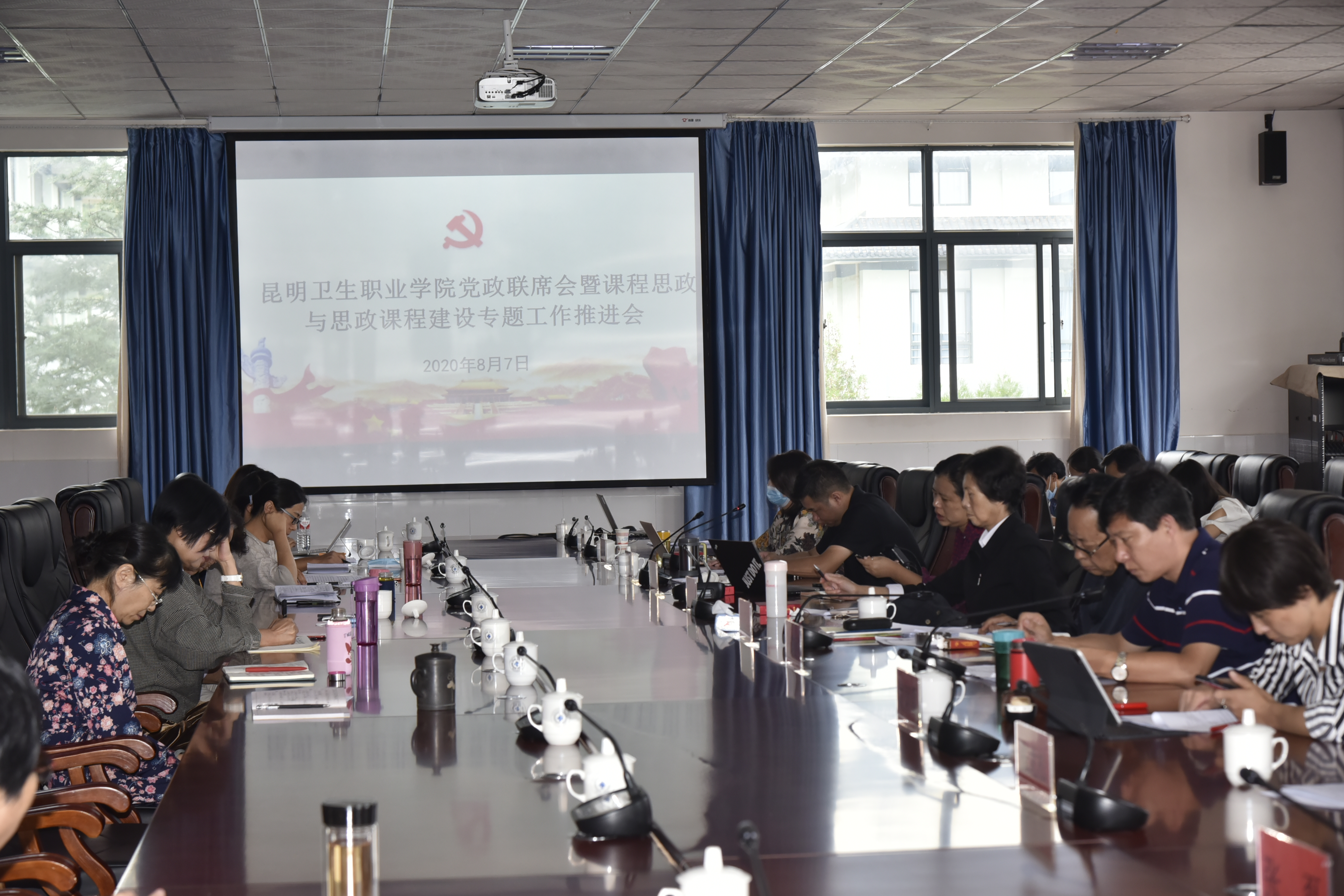 为认真学习贯彻落实云南省教育厅转发教育部《关于印发高等学校课程思政与思政课程建设指导纲要》的文件精神,全面推进学院课程思政与思政课程建设, 8月7日上午,beat365平台官方网站党政联席会暨课程思政与思政课程建设专题工作推进会在学院图书馆二楼会议室召开。