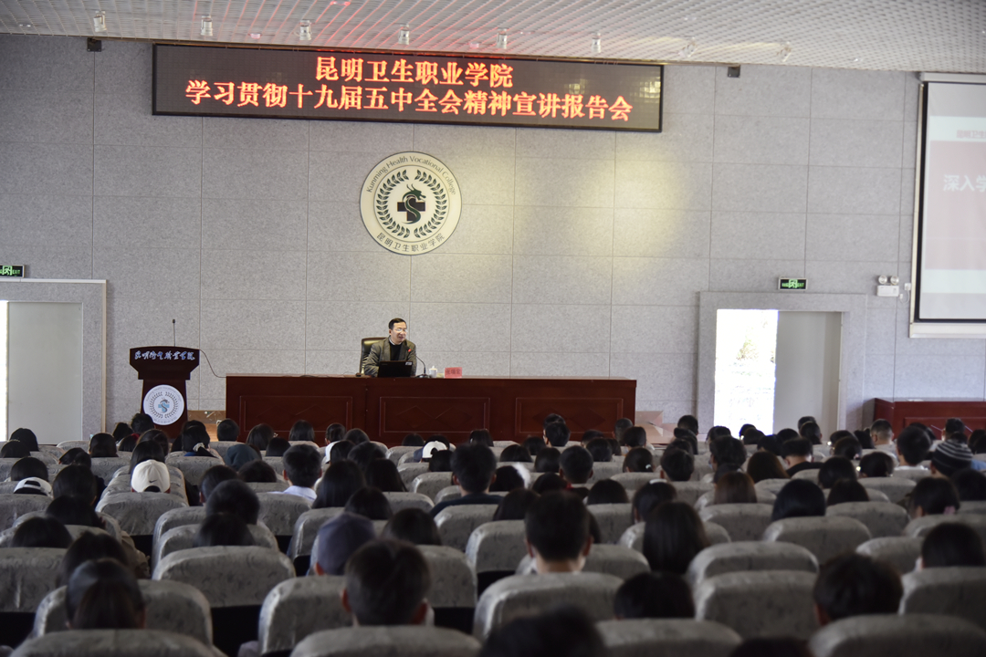 学院党委副书记张晓刚主持宣讲报告会。他指出,学习宣传贯彻落实党的十九届五中全会精神是当前和今后一个时期学院的重要政治任务。就抓好学习宣传贯彻,他提出三点要求:一是全体教职工要提高政治站位,认真学习贯彻全会精神,迅速掀起学习热潮;二是树立终身学习,学以致用的理念,结合学院实际做好教育改革落实落细落地,为培养德智体美劳全面发展的社会主义建设者和接班人贡献昆卫力量;三是勉励昆卫青年学子自觉将思想和行动统一到全会精神上来,将“小我”融入“大我”,将个人理想与家国情怀同频共振,敢于有梦、勇于追梦、勤于圆梦,努力成为健康中国梦的守护者。