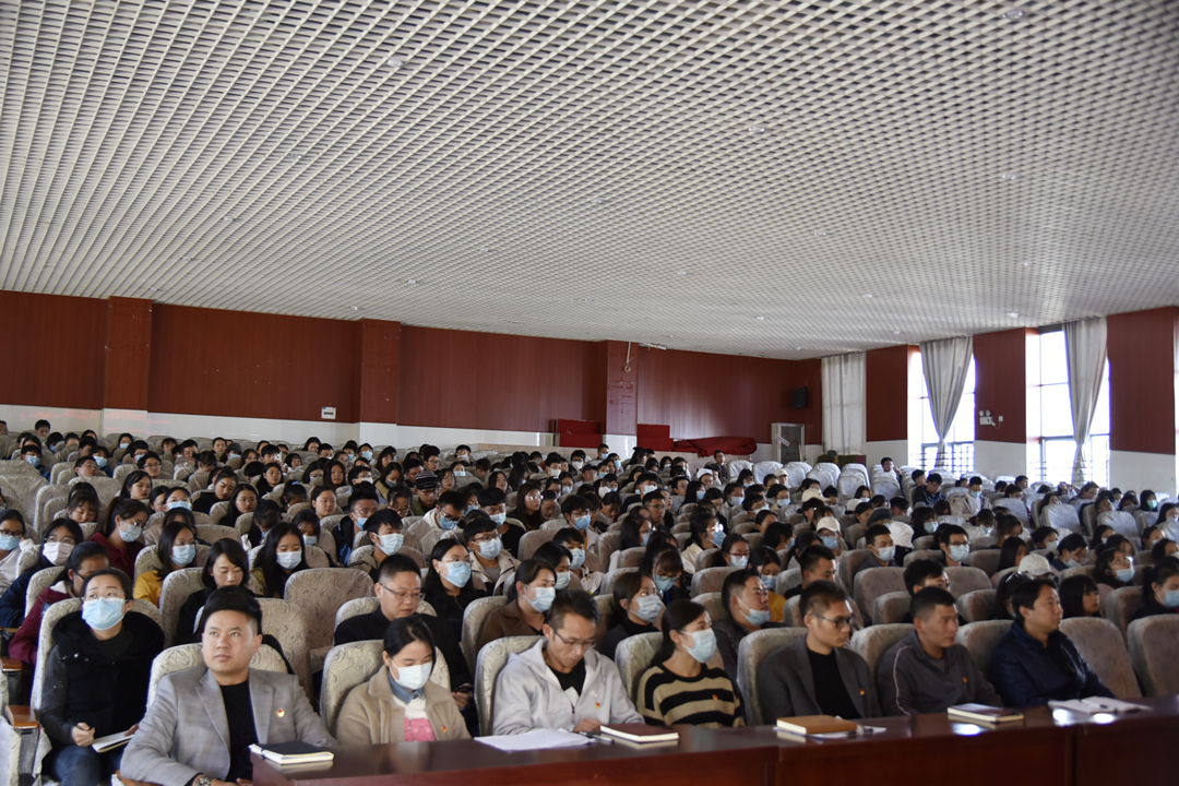 学院党政领导、副处级以上干部、党员教师代表和学生代表等400余人现场聆听专题报告。