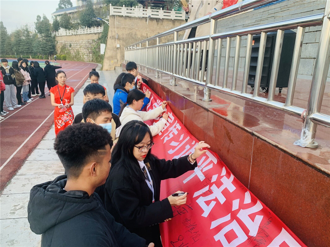 为迎接12月4日“国家宪法日”,切实加强学生法治教育,大力弘扬宪法精神,beat365开展了“国旗下讲宪法”主题演讲教育活动,并在主题演讲后组织同学开展学宪法、知宪法签名活动