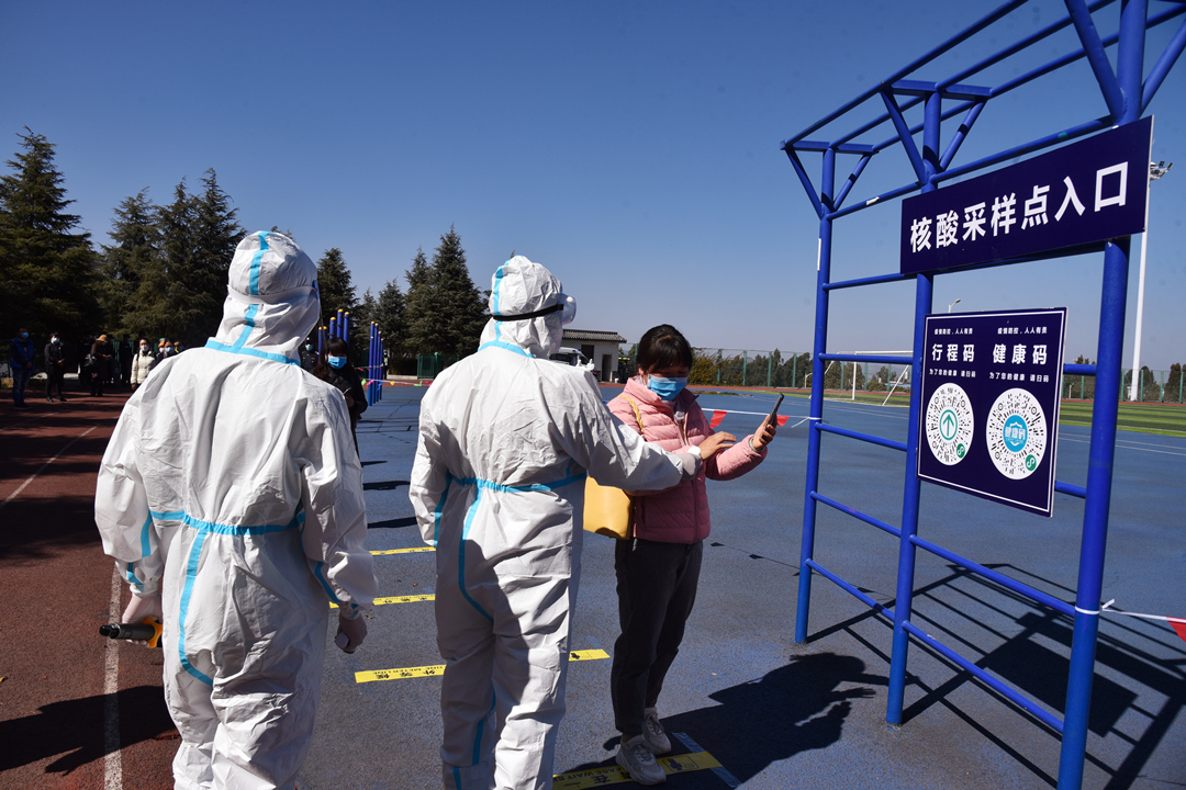 开展环境消杀、演练群众测量体温、人员信息登记、条码绑定、采样、有序离场……演练有序地进行。演练现场还特别设置了体温异常人员的转运处置、检测人员不服从采样现场管理,扰乱采样现场秩序的安保处置环节,检验了现场工作人员应对突发情况的处置能力。