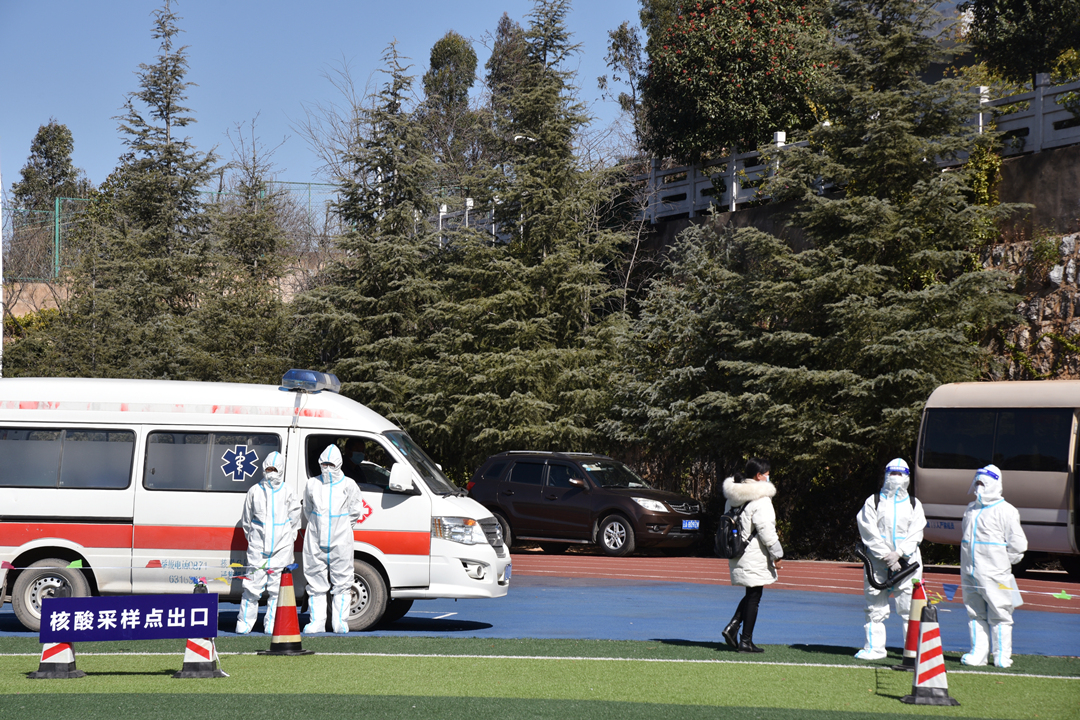 1月25日,昆明市晋宁区全员核酸检测应急演练在beat365平台官方网站举行。演练由晋宁区疫情防控指挥部办公室组织,昆阳街道办、区公安分局、区卫生健康局、区疾控中心等部委办局实施。
