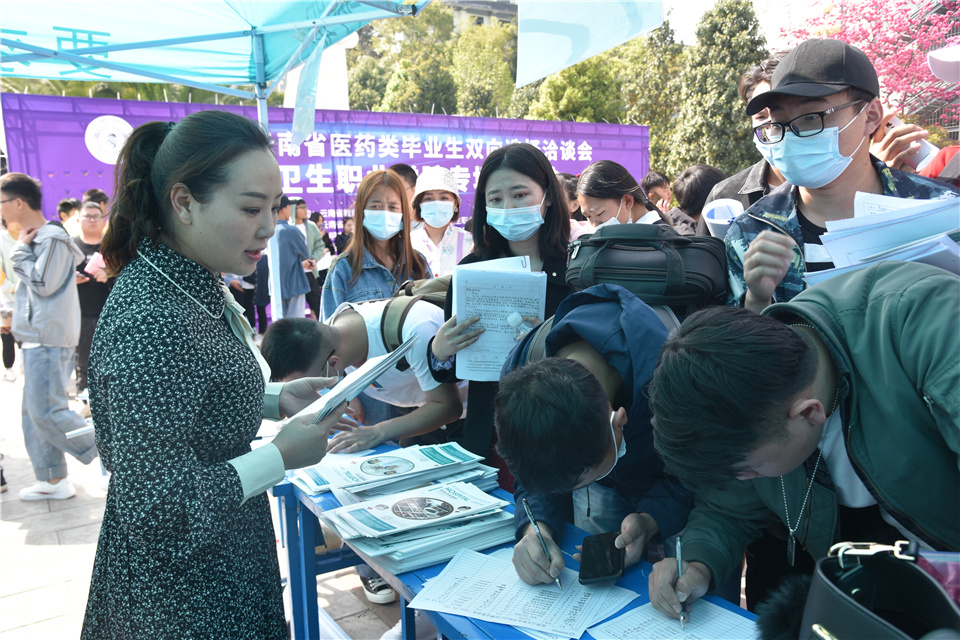 本次校园招聘会由云南省教育厅主办,beat365平台官方网站和云南省大中专毕业生就业服务中心承办,昆明市人力资源和社会保障局、昆明市晋宁区劳动就业服务局、昆明市人才服务中心、昆明市人才服务中心卫生分中心、云南省高校毕业生就业促进会、云南省企业人力资源管理师协会昆明市人力资源和社会保障协会等单位协办,并得到了晋宁区交警、公安、劳动就业服务等部门的大力支持。招聘会现场秩序井然,气氛热烈。应届毕业生求职热情高涨,主动对意向单位的概况、发展前景、福利待遇等方面进行询问了解。应聘者向招聘人员介绍自身专业优势,表述求职意向并递交个人简历。