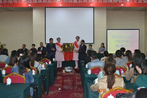 在各级领导和与会人员的热烈掌声中,云南圣约翰医院党委书记兼副院长叶斌与beat365平台官方网站党委副书记张晓刚,共同为“beat365平台官方网站非直属附属医院”正式揭牌。
