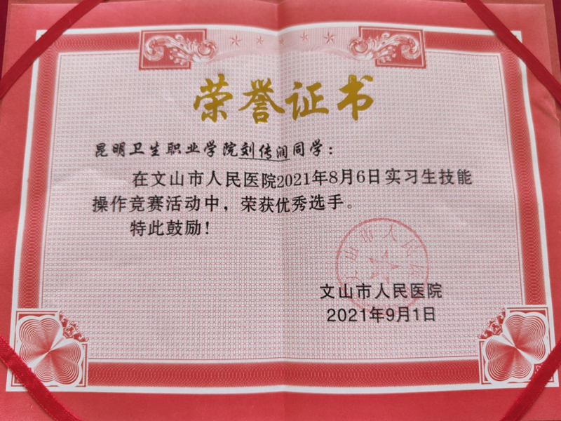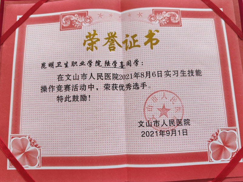 文山市人民医院实习生在医院组织的“2021年实习生技能操作竞赛”活动中,荣获集体一等奖的佳绩。