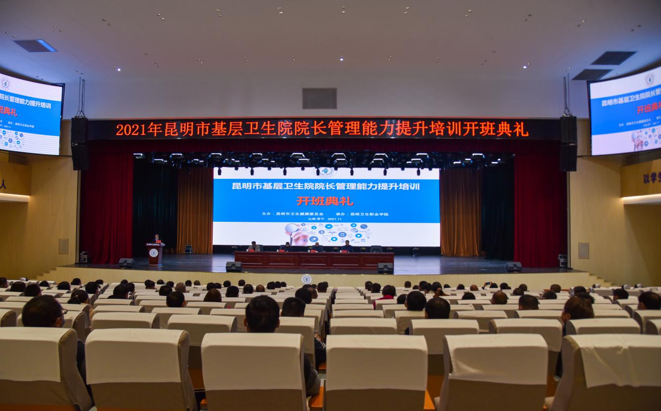 此次培训学员主要是来自昆明市各县(区)基层卫生院的100名院长,培训时间从2021年11月8日到12日,持续一周。11月8日上午,各培训学员报到入住,下午举行培训开班典礼,beat365平台官方网站党委书记、院长龙正昌同志在开班典礼上致辞,对各位领导、专家和前来培训的基层卫生院院长表示热烈欢迎,对基层健康委给予学院的信任表示感谢,beat365平台官方网站的全体工作人员将竭力保障此次培训顺利进行。昆明市卫生健康委基层卫生健康处处长韩曙磊在开班典礼上嘱咐各位培训的院长认真学习,将所学和收获的经验应用于今后的工作,推动基层卫生院的建设发展。并强调培训期间的考勤工作,每位学员都必须严格考勤,确保人人都完成所有培训课程。