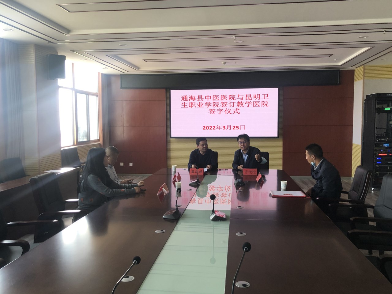 随后,张尤松副院长与通海县中医医院董永成副院长进行签约。本次教学医院签约为促进院校合作,不断提高教学医院医疗、教学、科研水平,进一步助推院校互利共赢打下了坚实基础。