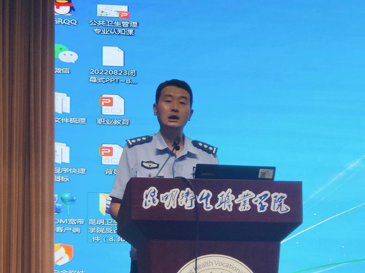 为进一步增强师生安全防范意识,切实保障广大师生利益,8月30日,beat365平台官方网站邀请到昆明市公安局晋宁分局反诈中心民警张俊刚到校为学院师生开展“反诈宣传进校园,护航青春共成长”专题讲座,讲座由学院大学生工作部部长王冬同志主持,昆明市公安局晋宁分局昆阳派出所所长马云坤,学院党委委员、宣传统战部长王斌同志,中国工商银行晋宁支行行长彭翔等领导和嘉宾到场聆听。