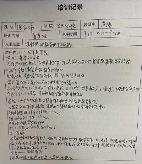 新进教师们均认真完成培训记录,并在讲座中交流了经验和体会。后续各二级学院将根据自身学科特点,对新进教师进行有计划的阶段性培养,教务处也将持续跟进教师培养相关工作。