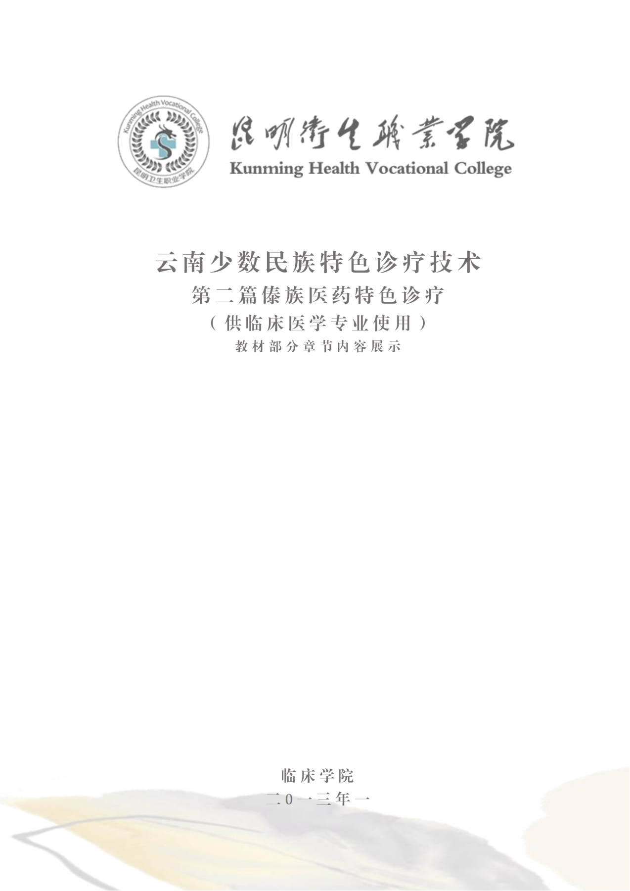 具有区域特色的校本教材—云南少数民族特色诊疗技术(第二篇 傣族医药特色诊疗)