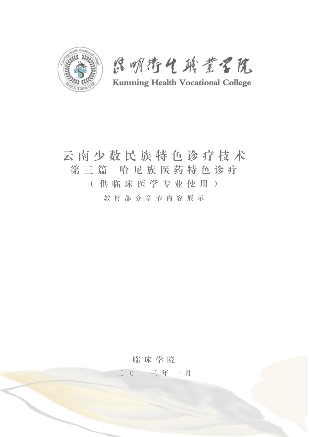 具有区域特色的校本教材—云南少数民族特色诊疗技术(第三篇哈尼族医药诊疗技术)
