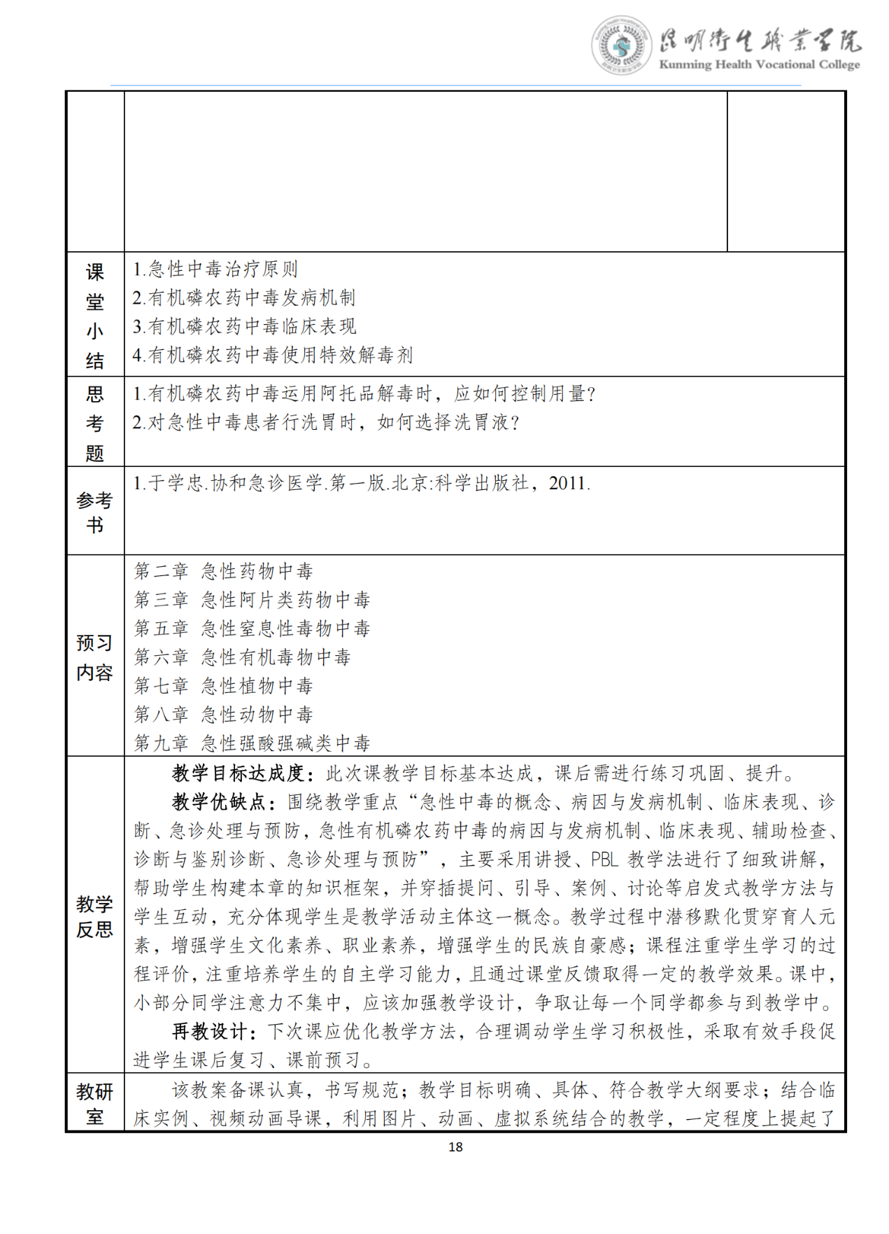 《急性中毒》教案(急诊学)