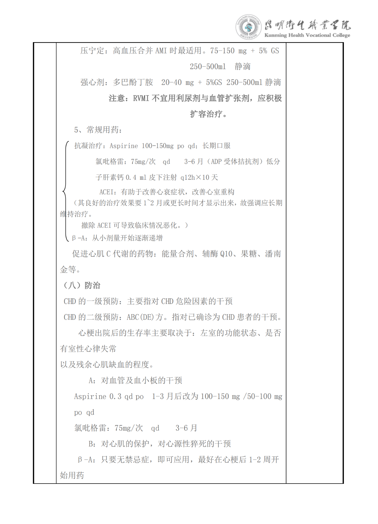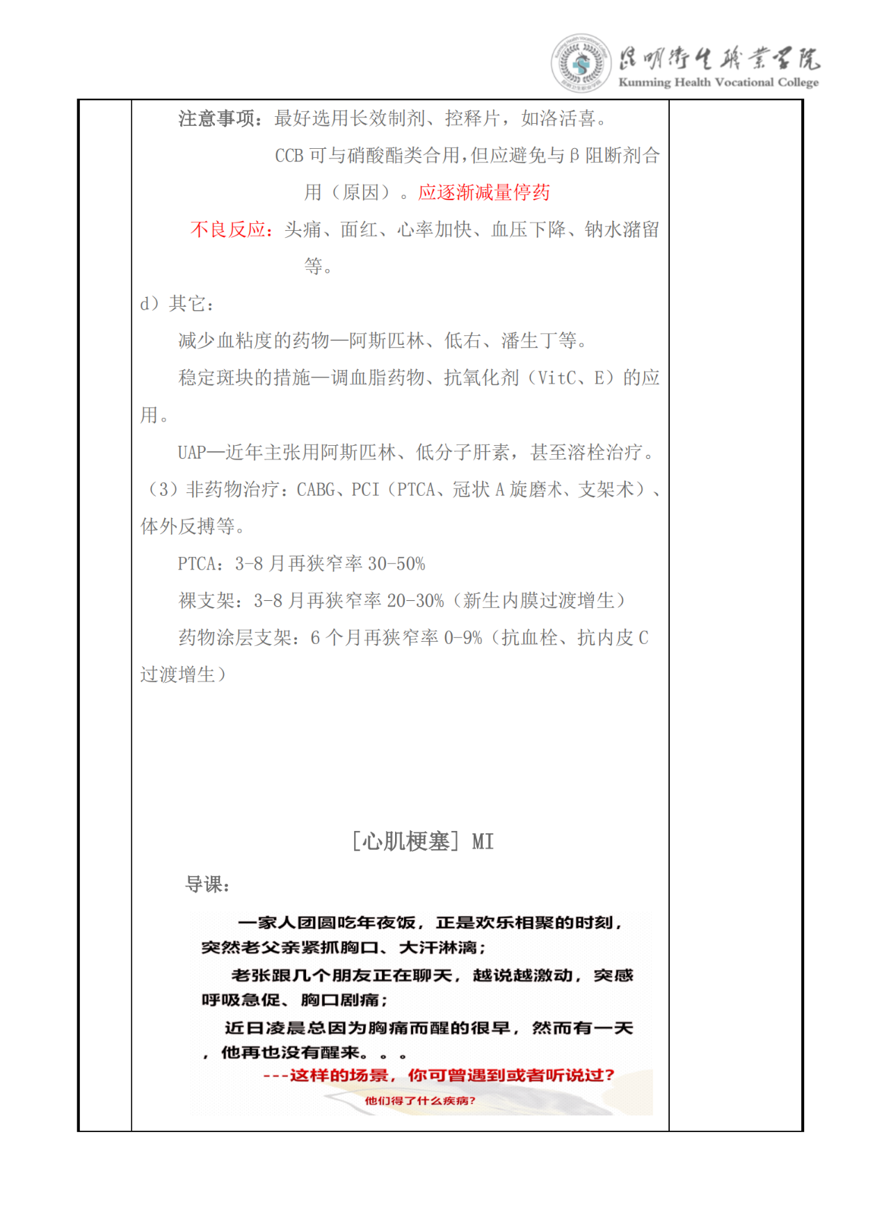 《冠状动脉粥样硬化性心脏病》教案(内科学)
