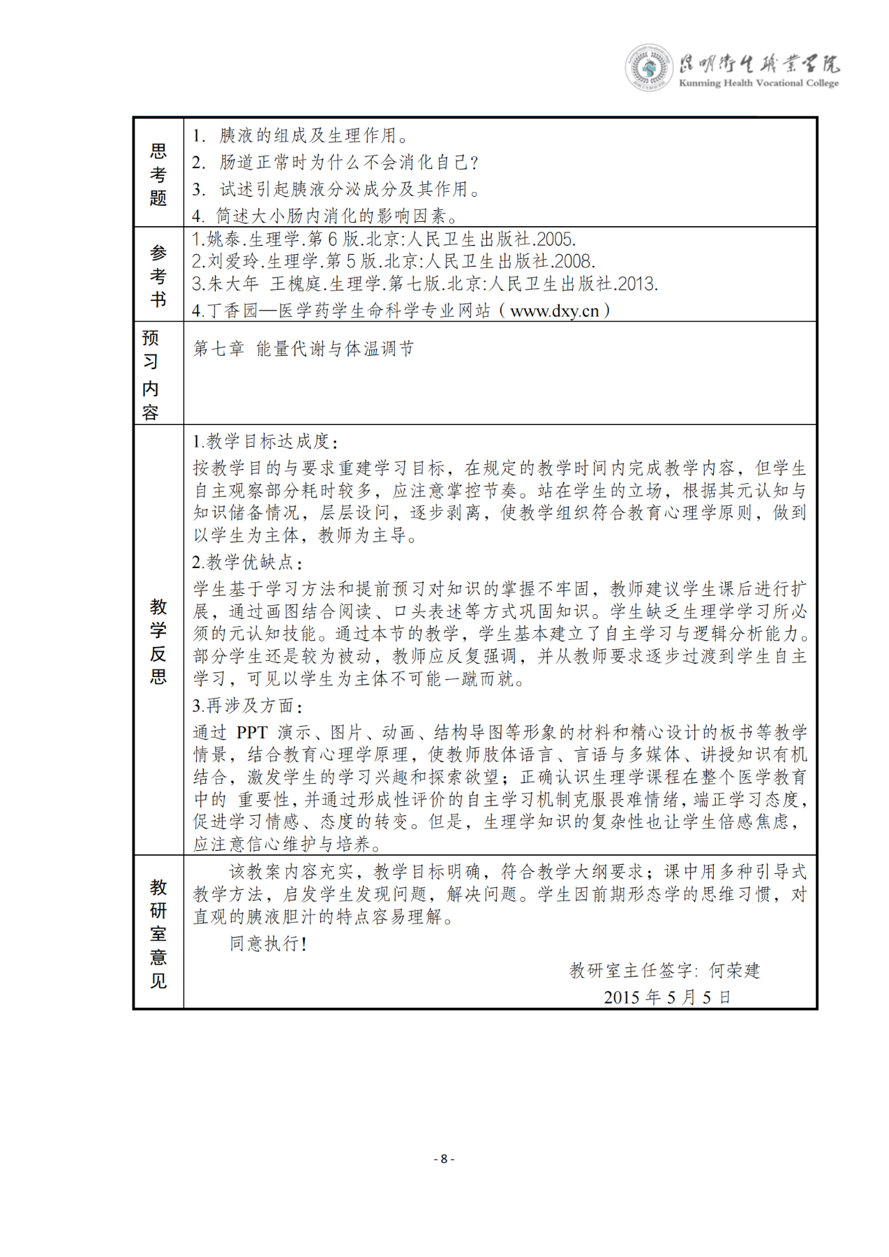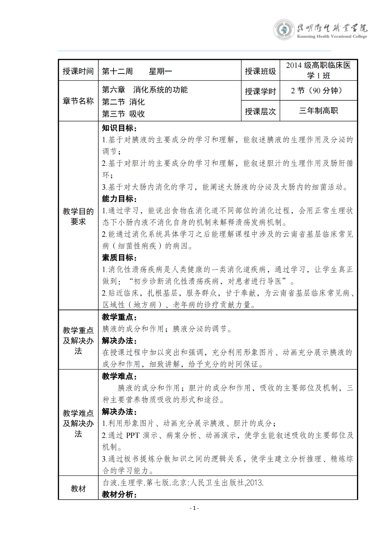 《消化与吸收》教案(生理学)