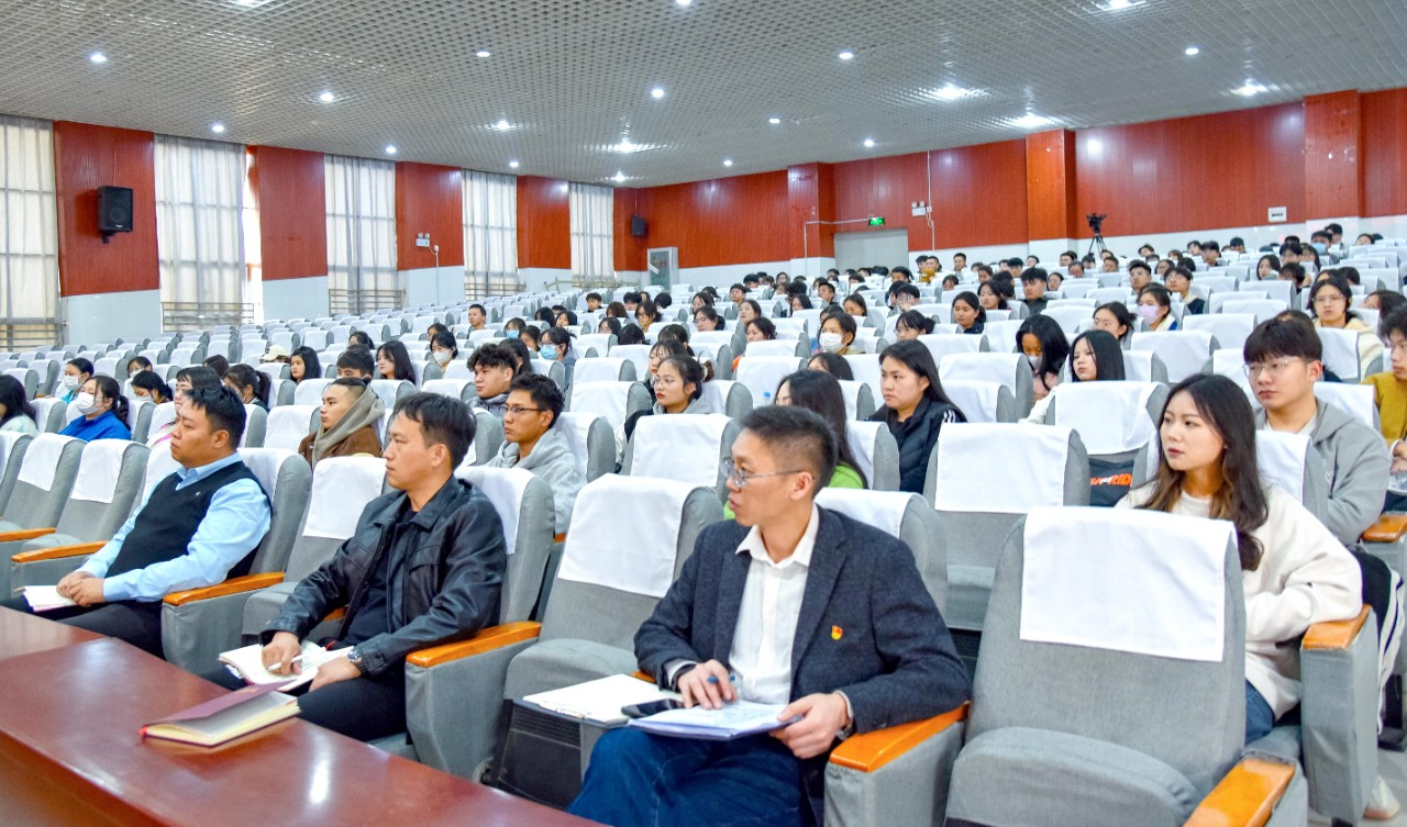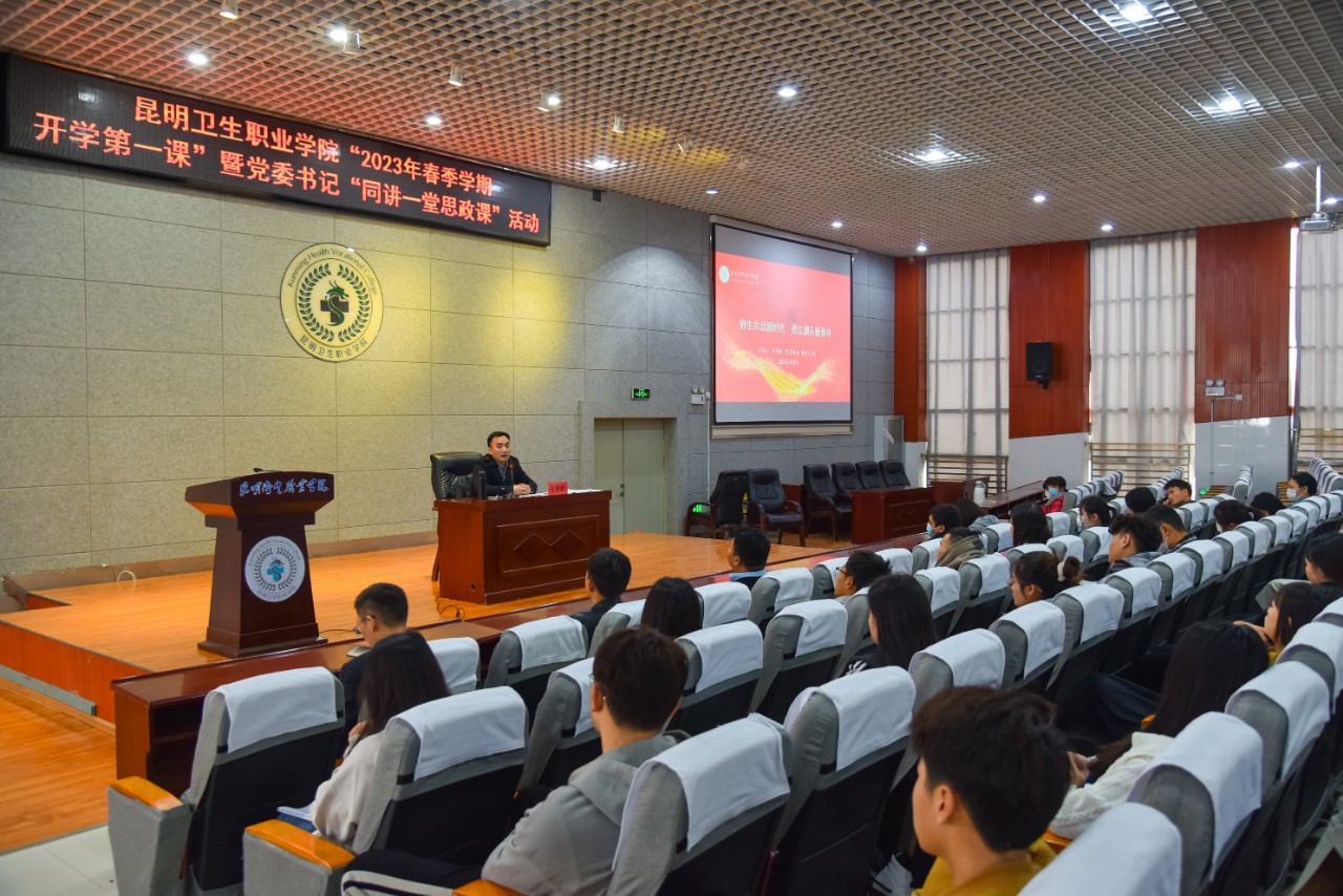 为全面贯彻党的教育方针,深入落实立德树人根本任务,进一步加强学生思想政治教育,2023年3月3日下午,beat365平台官方网站“2023年春季学期开学第一课暨同讲一堂思政课”在学术报告厅举行。学院党委书记马季昕以《师生共话新时代 勇立潮头新青年》为题进行专题授课。党委委员、宣传统战部部长王斌主持会议,党委办公室、学院办公室等部门负责人,学院师生代表200余人现场聆听。