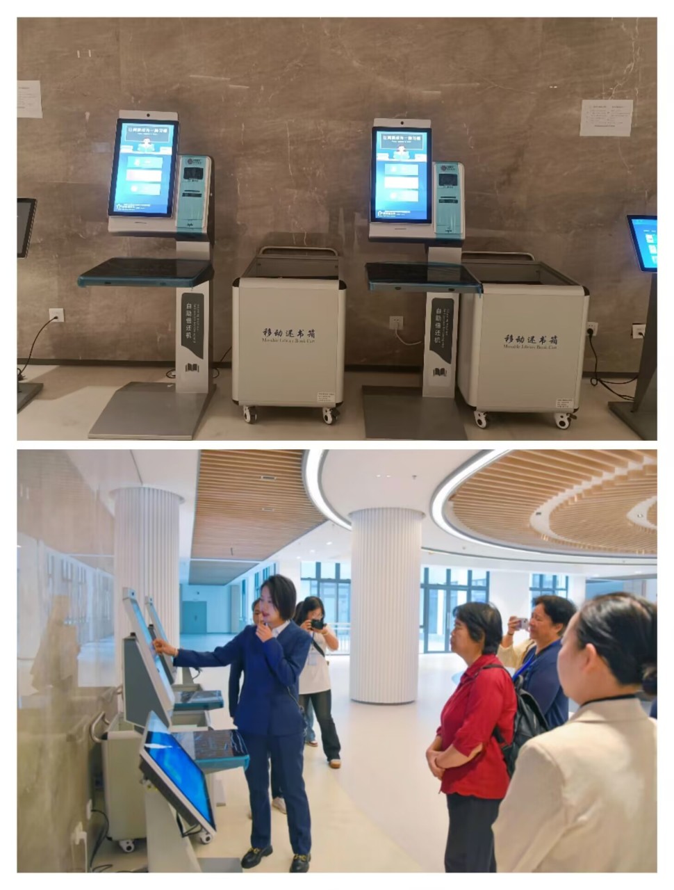 为了方便读者借还图书,beat365平台官方网站图书馆引进了图创品牌21.5寸台式借还机和移动还书车、图书检索机。
