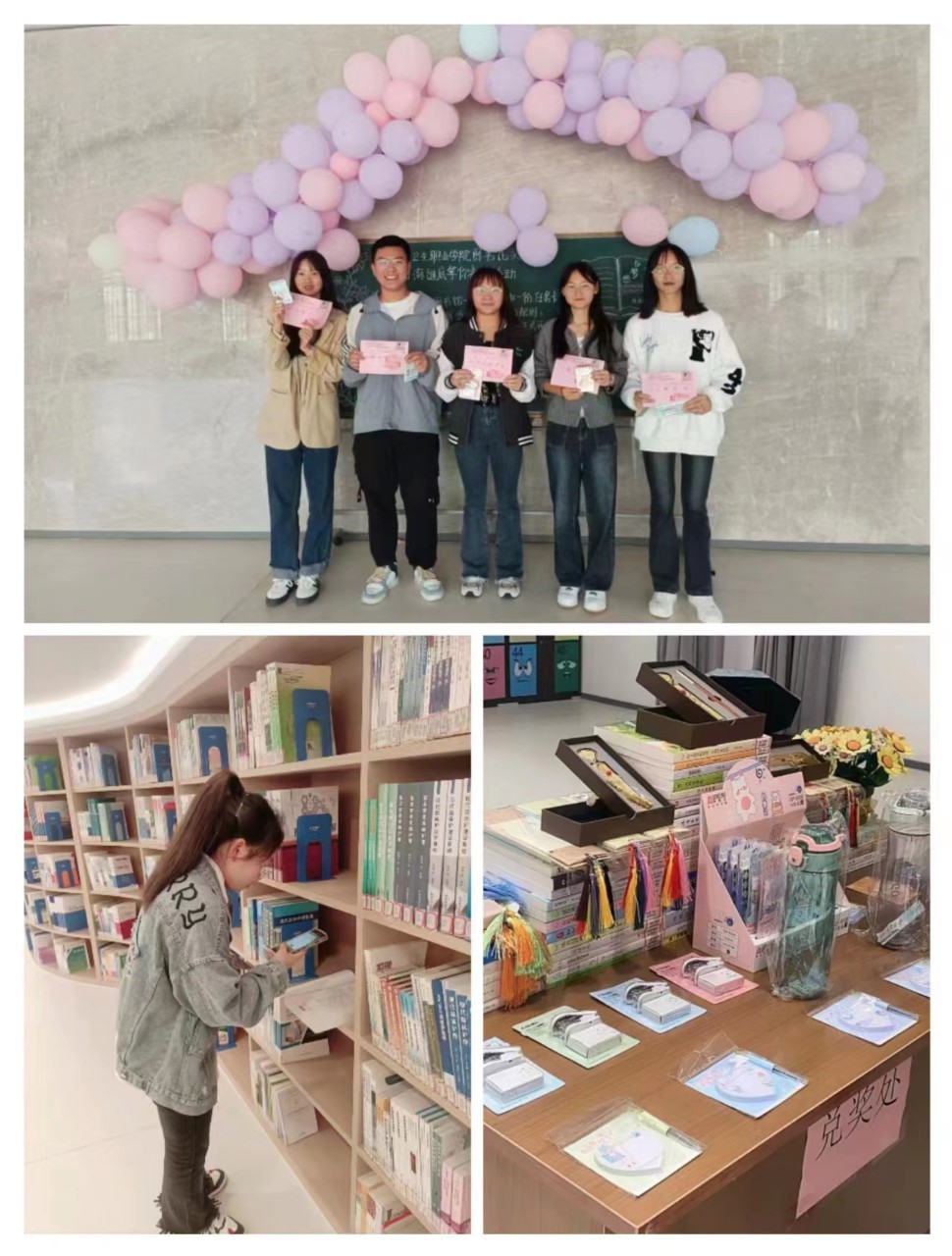 随着五分钟倒计时的开始,参赛者加快了搜索速度,查阅着索书号,斗志高昂的寻找着符合要求的书籍,时间一到,参赛者立刻回到起点,或自信或忐忑地由读书协会的学生们清点自己的收获,经过老师们核对找到书籍的数目后,获奖的同学们得到了丰厚的礼物,遗憾止步的同学们也获得了属于自己的小礼品。