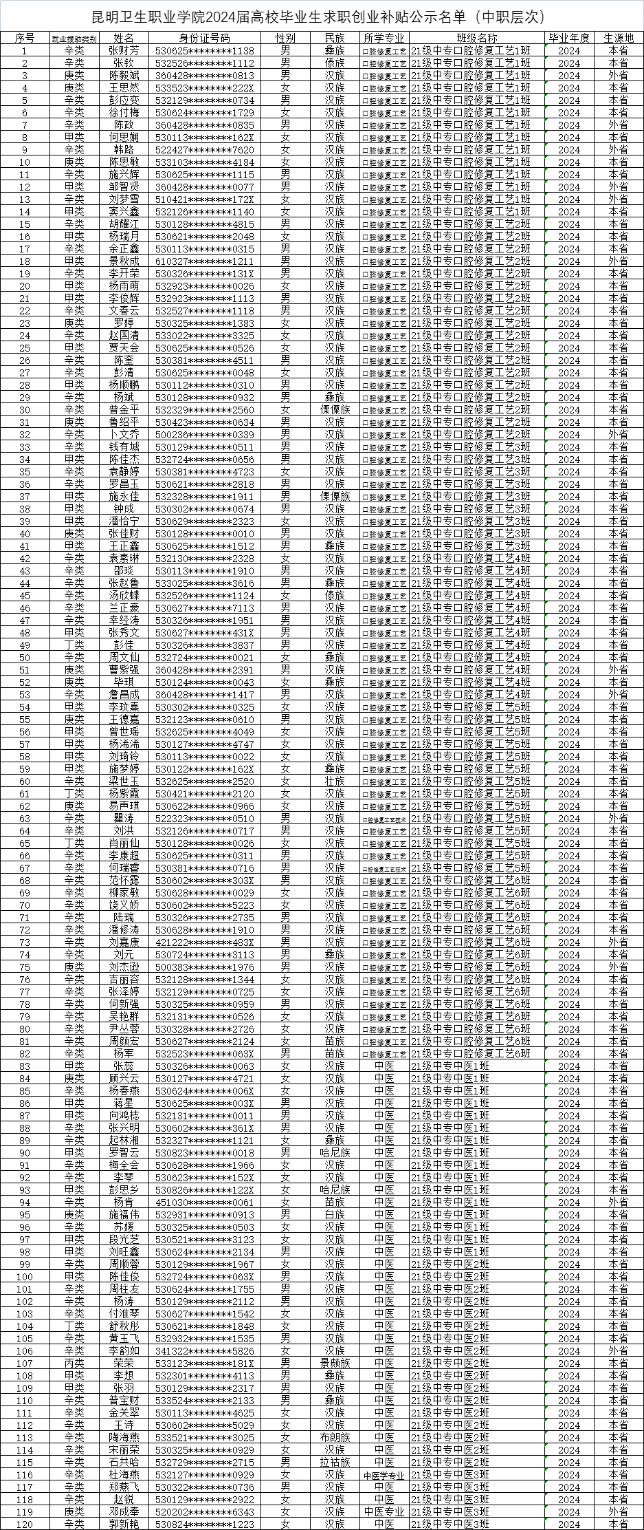 beat365平台官方网站关于2024届高校毕业生求职创业补贴中职层次毕业生校级审核通过名单公示决定