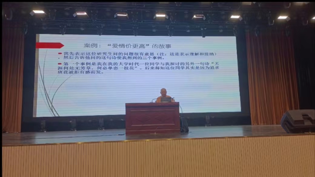 生命诚可贵,爱情价更高。解教授例举了他大学时期和周围同学探讨过的“天涯何处无芳草,何必单恋一枝花”,后来他的同学因追求班花被拒有感而发,爱情固然价更高,但生命更可贵。当一段感情失败时,不应沮丧,要向正确的方向去思考,成就更好的自己。