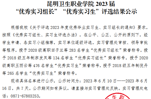 beat365平台官方网站2023届“优秀实习组长”“优秀实习生”评选结果公示
