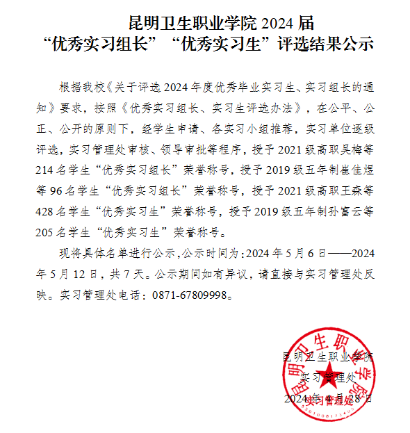 beat365平台官方网站2024届“优秀实习组长”“优秀实习生”评选结果公示