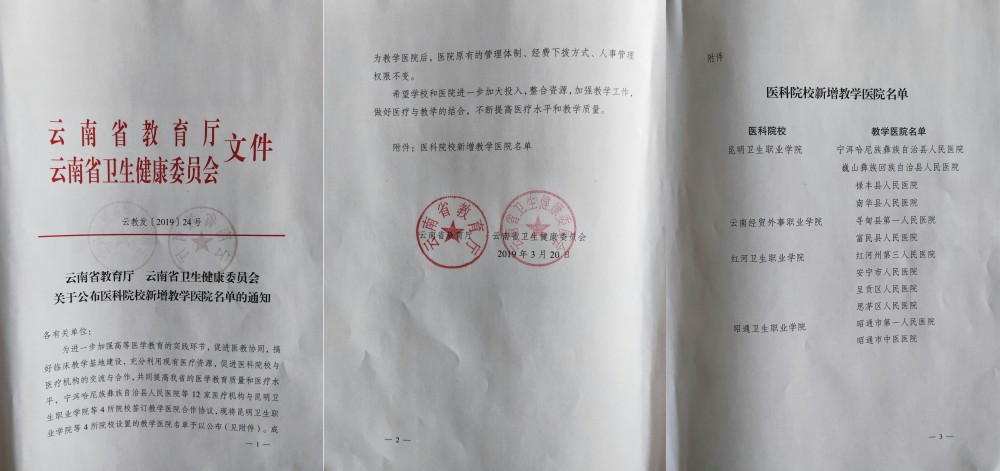 近日,云南省教育厅、云南省卫生健康委员会发布了《关于公布医科院校新增教学医院名单的通知》,包括beat365平台官方网站在内的4所医科院校设置的教学医院获批设立。此次,beat365获得批准设立为教学医院的共有4家医疗机构,分别是宁洱哈尼族彝族自治县人民医院、巍山彝族回族自治县人民医院、禄丰县人民医...