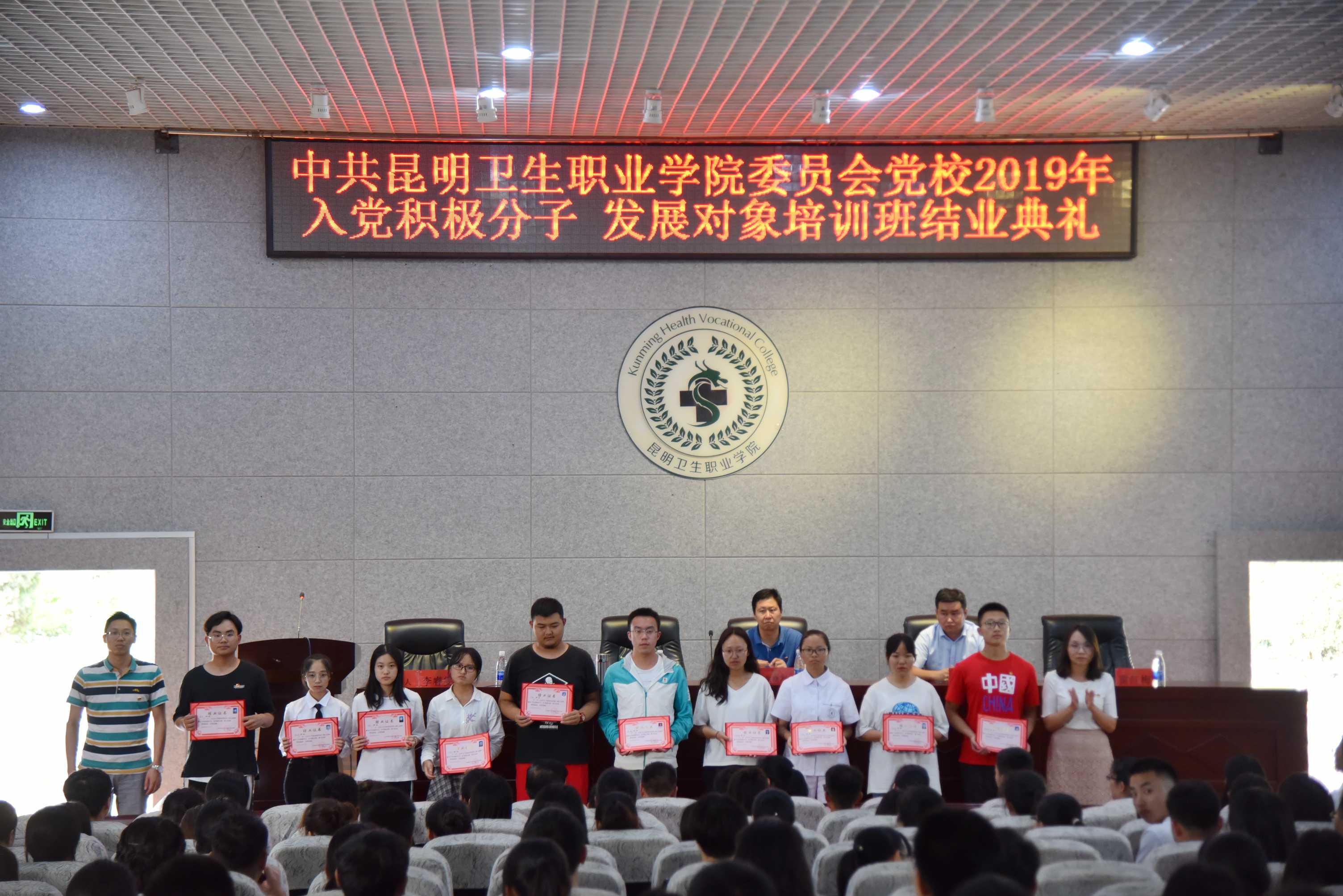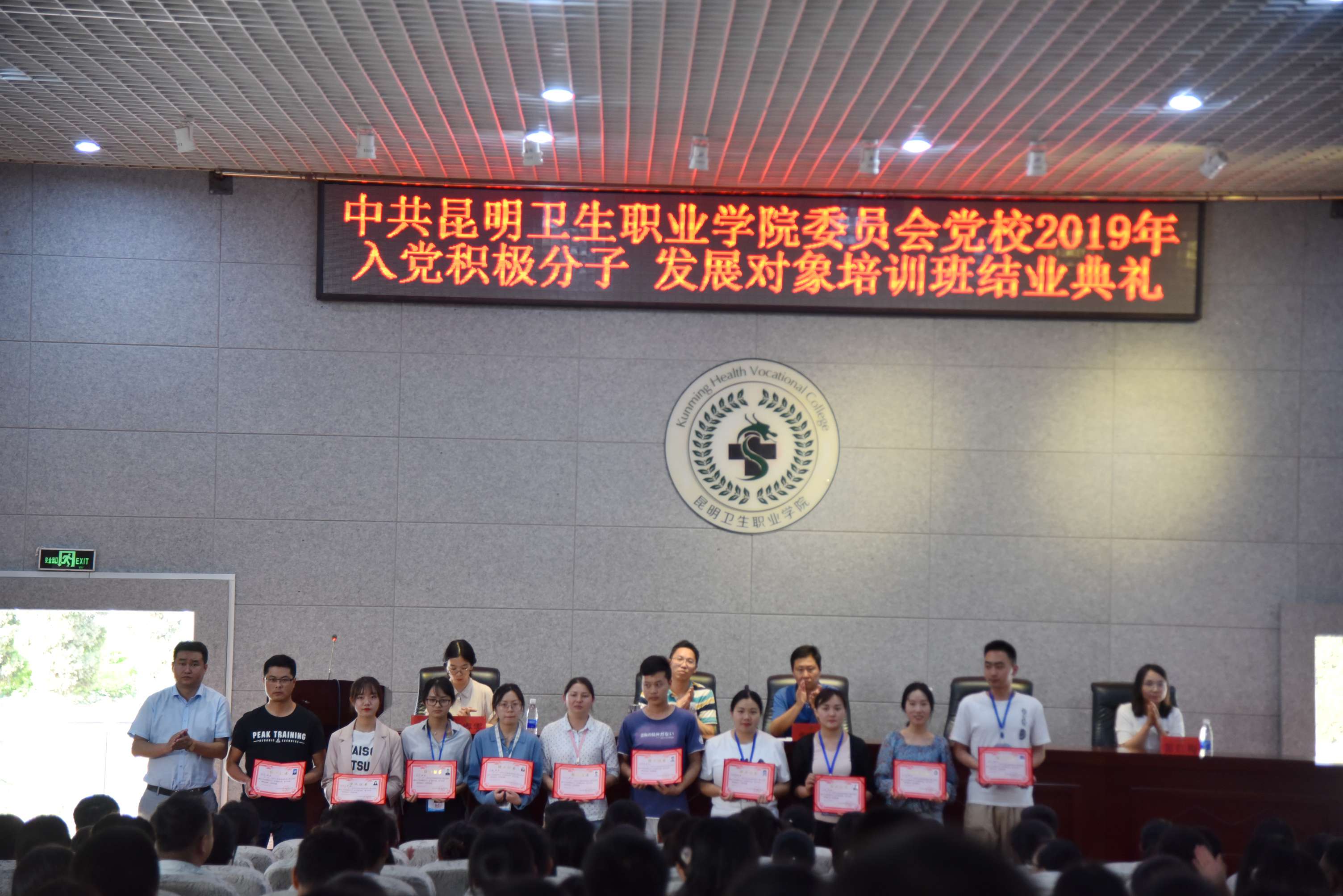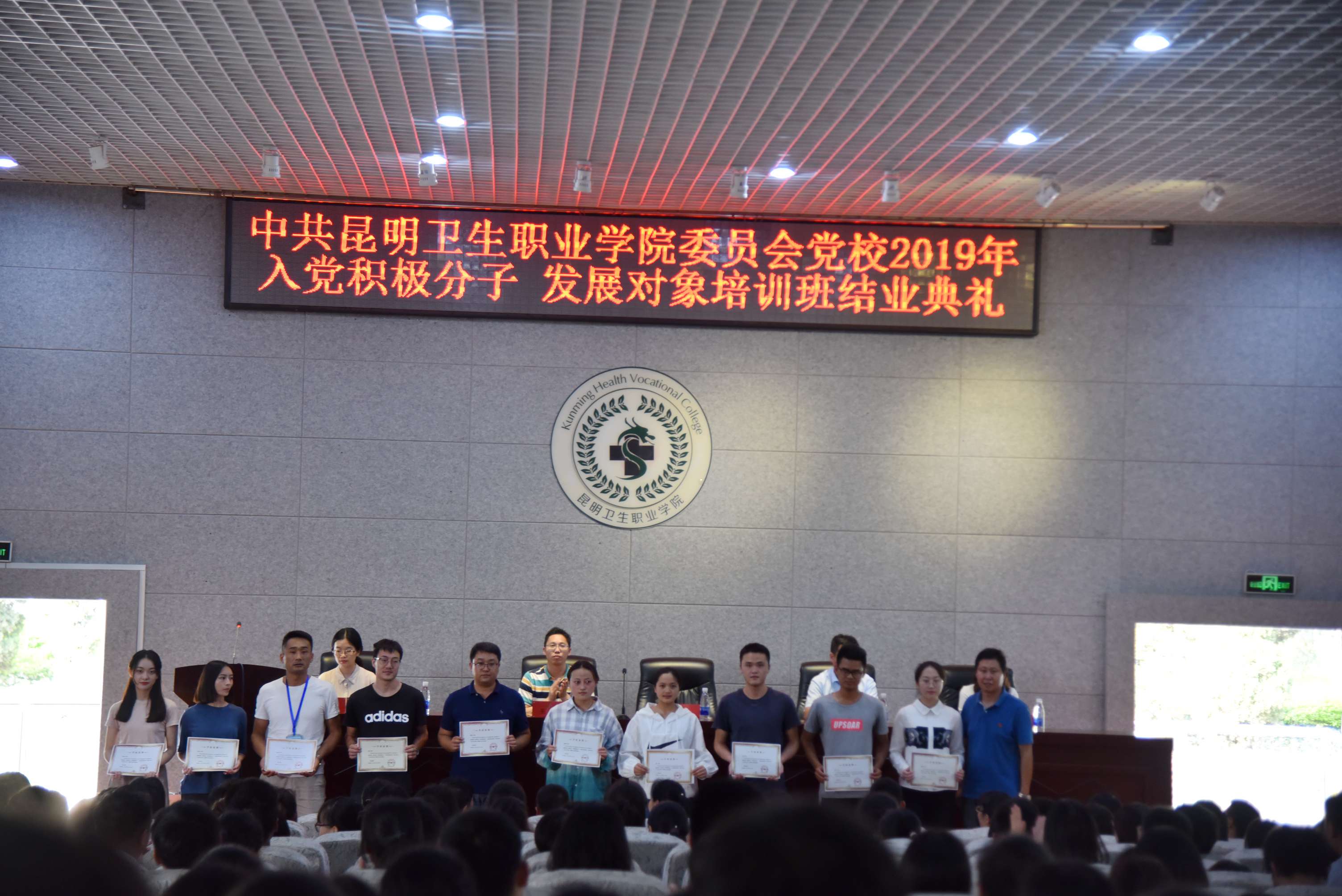 2019年5月22日17:30,学院党委党校2019年入党积极分子、发展对象培训班结业典礼在学术报告厅顺利举行。学院党委副书记、组织部部长张晓刚,党委委员、副院长周平,党委委员、宣传统战部部长王斌,团委书记、党校办公室主任雷红梅,以及各党支部书记、委员、组织员和培训班学员300余人参加了会议。结业典礼由党委组织部副部长李睿雯主持。