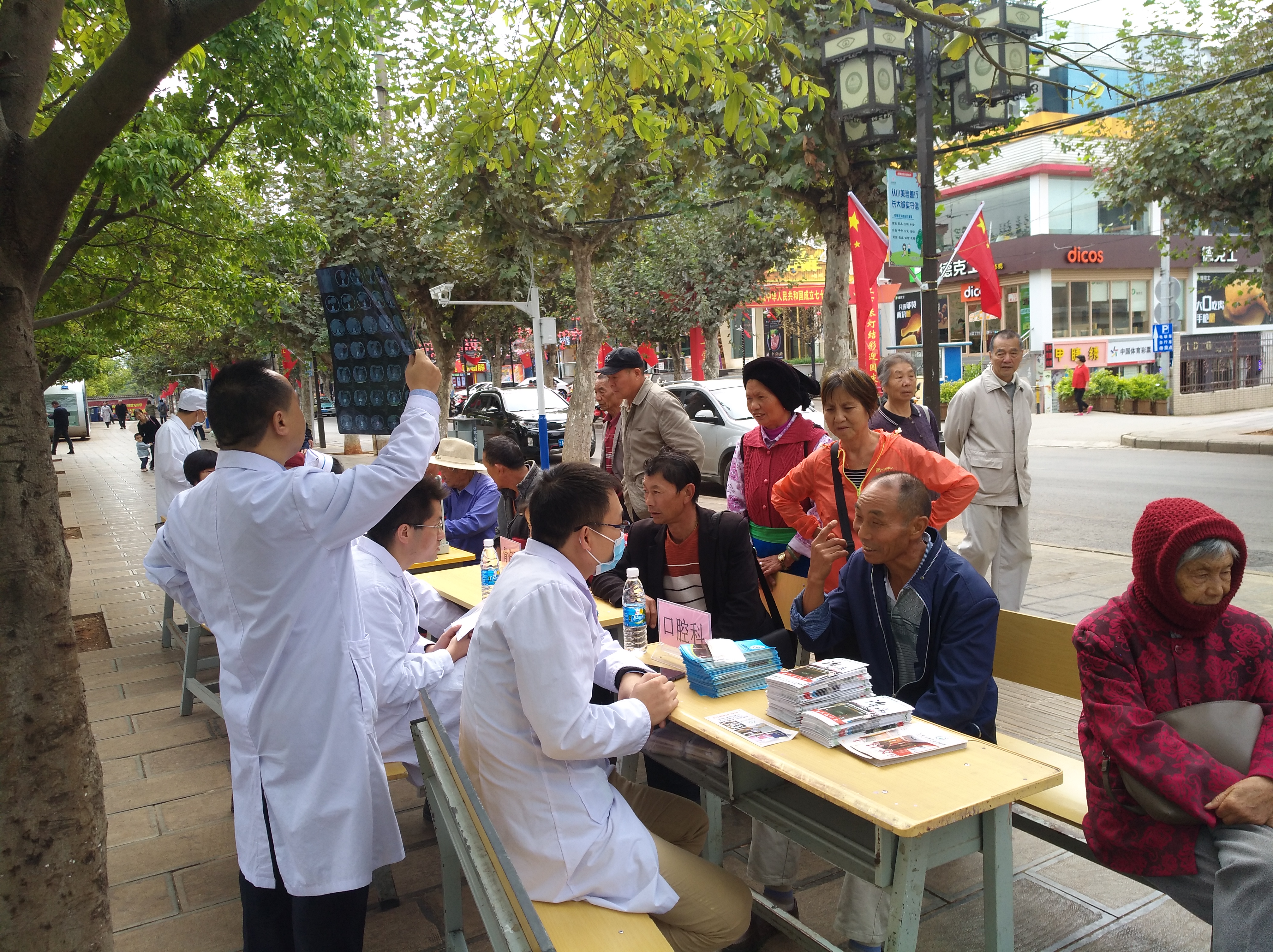 上午9时,义诊活动如期在郑和文化广场举行。beat365组织内科、外科、骨伤科、口腔科、皮肤科、针灸科10名医生、5名护士和4位医学院实习生参加了这次义诊活动。他们有的积极为群众看病诊治,有的为就诊群众量血压、还有的利用空闲时间向群众发放了中医预防宣传、科普宣传彩页等,并向就诊群众详细讲解了的健康保健知识。