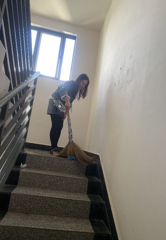 本次活动经雷红梅书记的组织与安排,共分为三个小组同时进行环保清洁活动,第一小组负责教师公寓外围环境的整治工作,第二小组、第三小组分别负责教师公寓5栋、6栋,7栋内部公共区域的卫生清理工作。