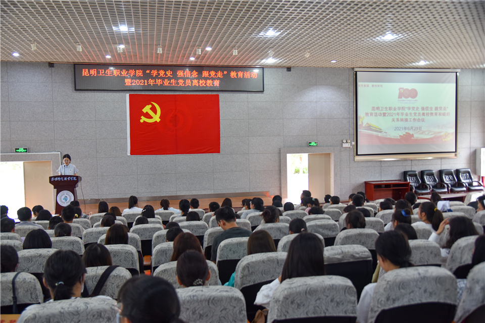 毕业生党员在离校前接受一次严格的党性教育是加强大学生党员教育的重要环节,为进一步落实党员教育管理工作,落实立德树人根本任务,增强党员“四个意识”,坚定“四个自信”,坚决做到“两个维护”,激励全体毕业生党员坚定信念、胸怀祖国、脚踏实地、担当作为,以实际行动和优异的成绩为党旗增辉,6月21日下午,学院党委在学术报告厅举行2021年毕业生党员离校教育培训。学院党委副书记张晓刚、党委组织部副部长李睿雯、各党支部委员、党委相关职能部门人员、2021年毕业生党员、2021年预备党员、入党积极分子等100余人参加了培训。培训由党委组织部副部长李睿雯同志主持。