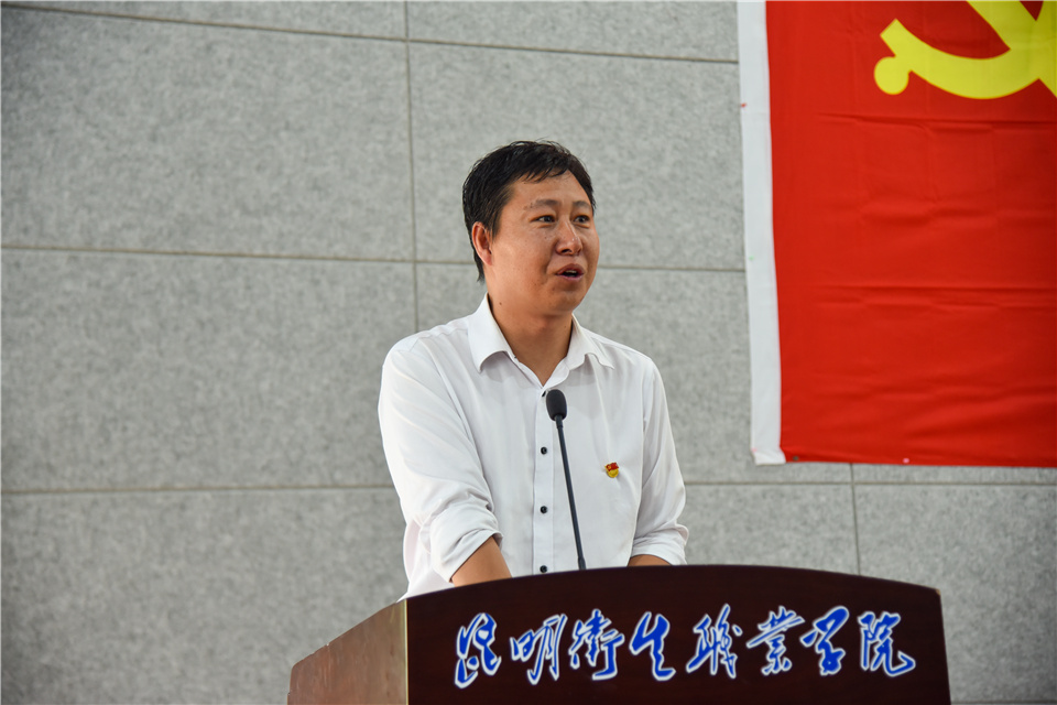 随后,2018级高职口腔6班贾云飞代表毕业生党员发言,在感恩三年来的学院生活的同时,他也代表毕业生党员激励新党员以自身的实际行动积极实践誓词,强化党员意识,增强党性观念,并祝福学院未来发展越来越好。