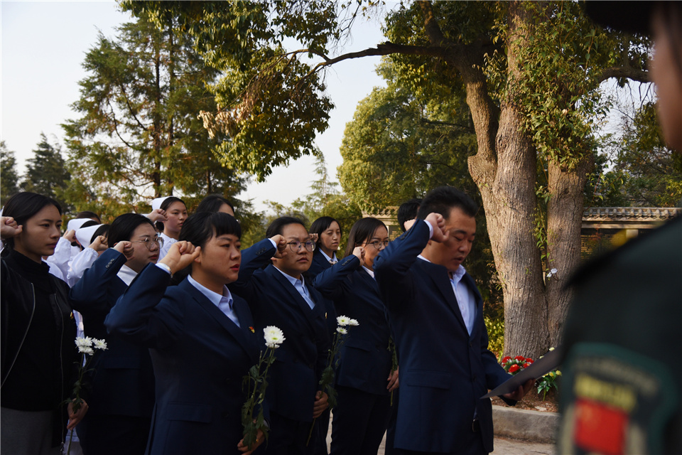 在党支部书记王德昌同志的带领下,全体党员面对党旗,右手握拳,重温入党誓词。宣誓完毕后向革命烈士纪念碑三鞠躬,表达对先烈的深切哀悼和无尽的敬仰之情,寄托对革命先烈的无限哀思,缅怀革命热血,感受前辈们的牺牲奉献精神,重温那段峥嵘岁月。
