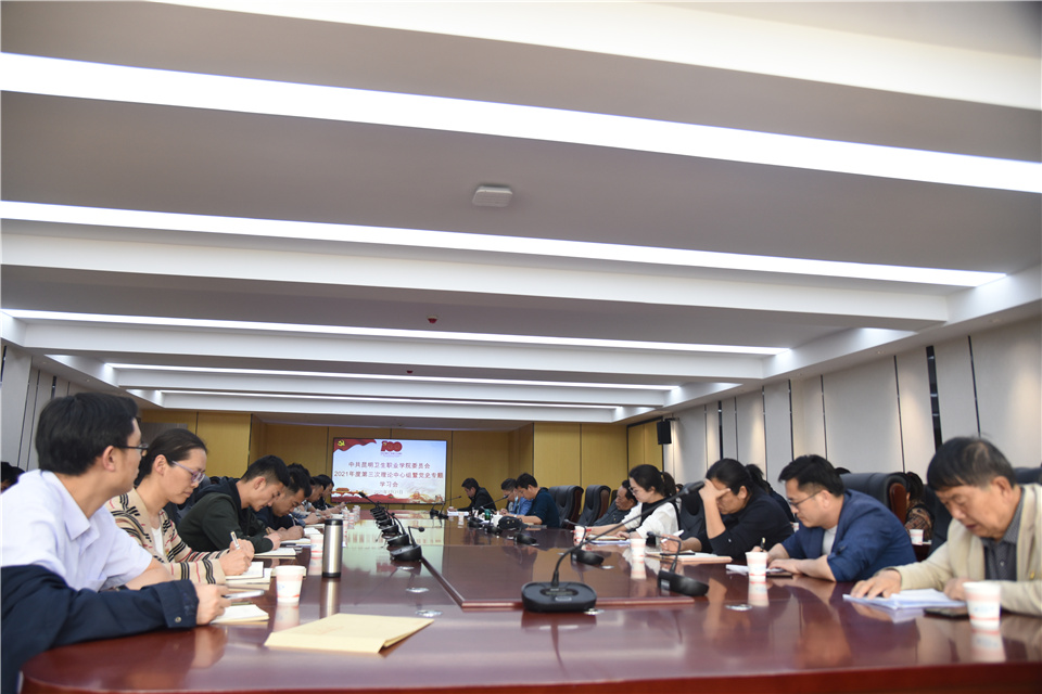 2021 年是中国共产党成立 100 周年。在全党开展党史学习教育,是党中央立足党的百年历史新起点、统筹中华民族伟大复兴战略全局和世界百年未有之大变局、为动员全党全国满怀信心投身全面建设社会主义现代化国家而作出的重大决策。为确保党史学习教育取得实效,学院党委组织第三次理论学习中心组暨党史学习教育专题学习。