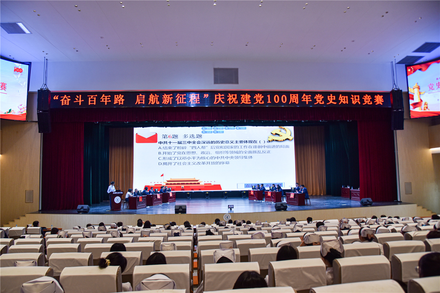 为迎接党的百年华诞,持续推动党史学习教育走深走实,营造浓厚的党史学习氛围,6月4日,beat365平台官方网站在明德会堂举行“奋斗百年路 启航新征程”庆祝中国共产党建党100周年党史知识竞赛活动。