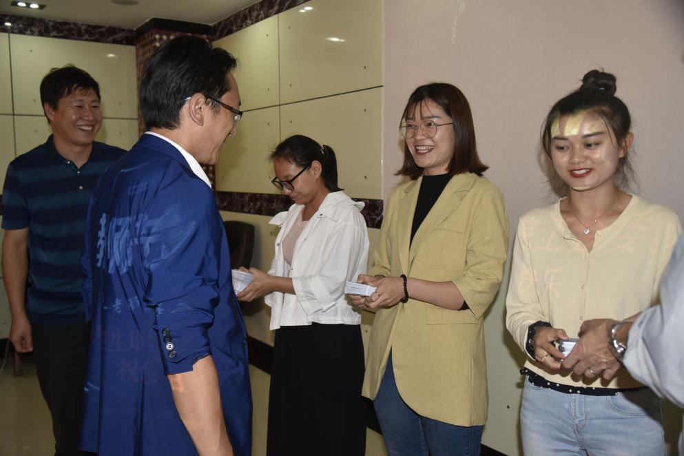 其次,领导们向每个部门发放新知图书城的“爱书卡”以此表达学院对全体教师真挚的祝福和衷心的问候。