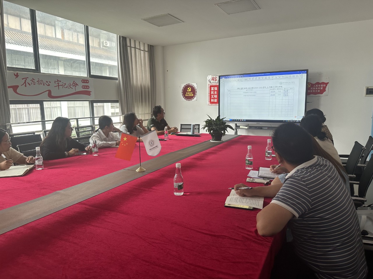 首先,学院工会主席虎志辉同志传达了集团领导对学院工会工作的要求和指示,他指出:新一届的工会委员们要认真履职,把工会工作“做实 做细 做内涵 ”,工作要积极创新,有所突破。随后,虎主席带领大家学习了下半年工会的重点工作安排,要求大家要按照时间节点按质按量完成各项工作。并对近期几项重点工作做了具体的安排部署:一是新会员的发展;二是教师节和中秋节的活动筹备;三是工会规章制度的修订和完善。