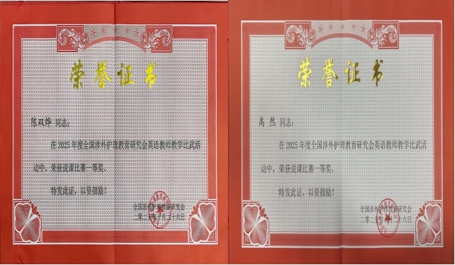 教学比武环节围绕护理专业英语教学设计、课堂教学展示、英文教学反思等维度展开,重点考察教师专业英语应用能力、教学创新能力及跨文化护理教学素养。备赛期间,两位教师深入研究涉外护理岗位需求,结合临床案例设计教学内容,创新采用 “情景模拟 + 小组协作” 教学模式,将专业知识与英语技能深度融合,展现了学院护理英语教学的较高水平,也充分彰显了学院在护理专业国际教育领域的教学实力。